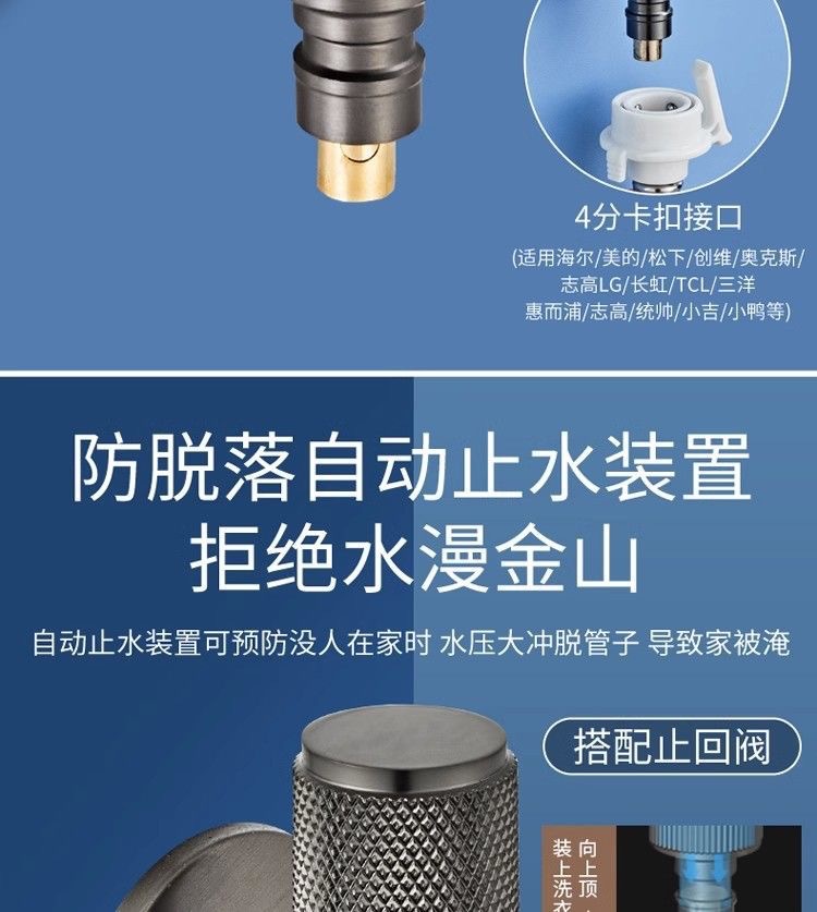 Специальный кран для стиральной машины из нержавеющей стали с ультракоротким соплом, соединитель с защелкой на 4 точки, универсальный автоматический водоотводный клапан