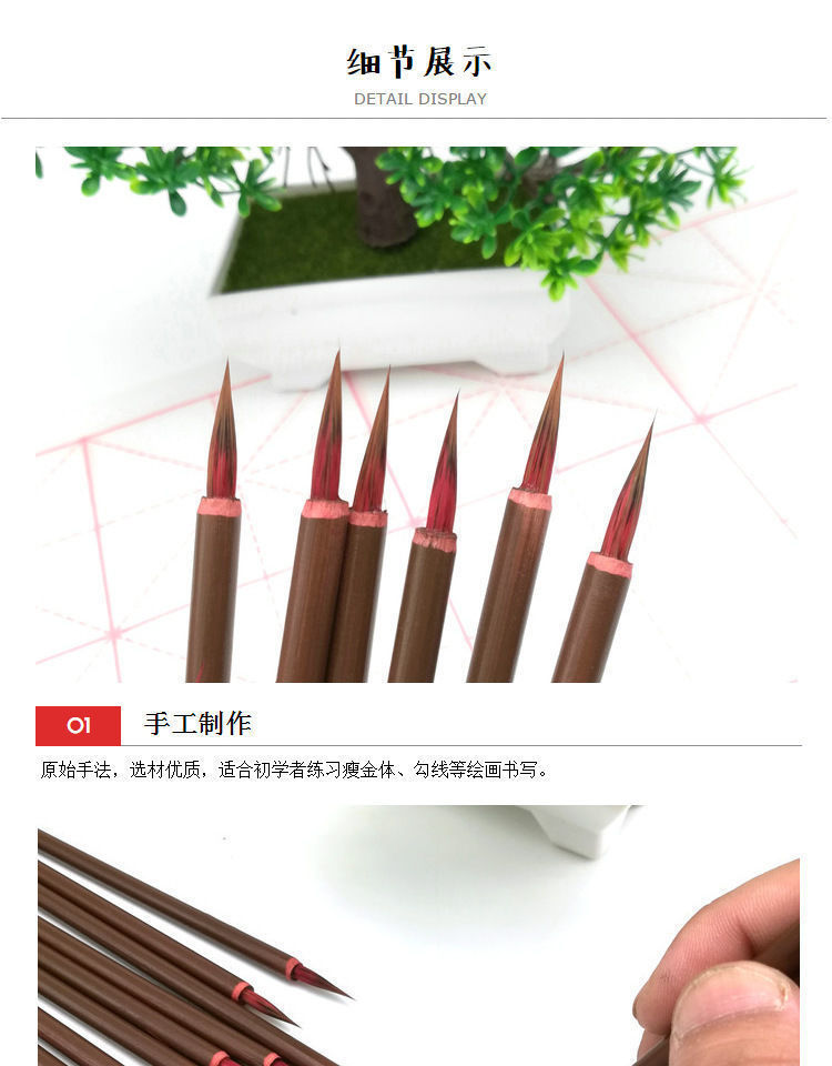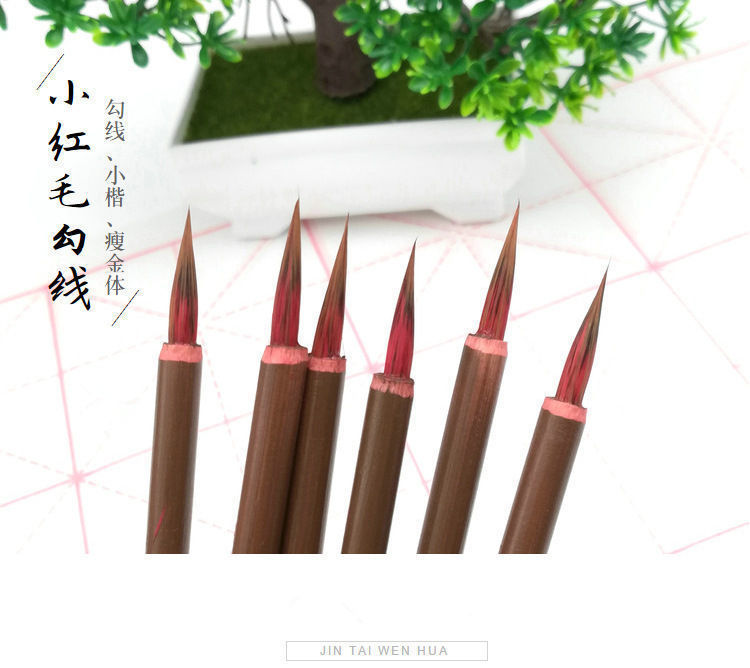 Маленькая красная щеточка для волос, кисть для письма, китайская живопись, тонкая золотая каллиграфия, студент, мелкий стандартный шрифт, тонкая ручка, листовая лента, рисование, край, изогнутая ручка