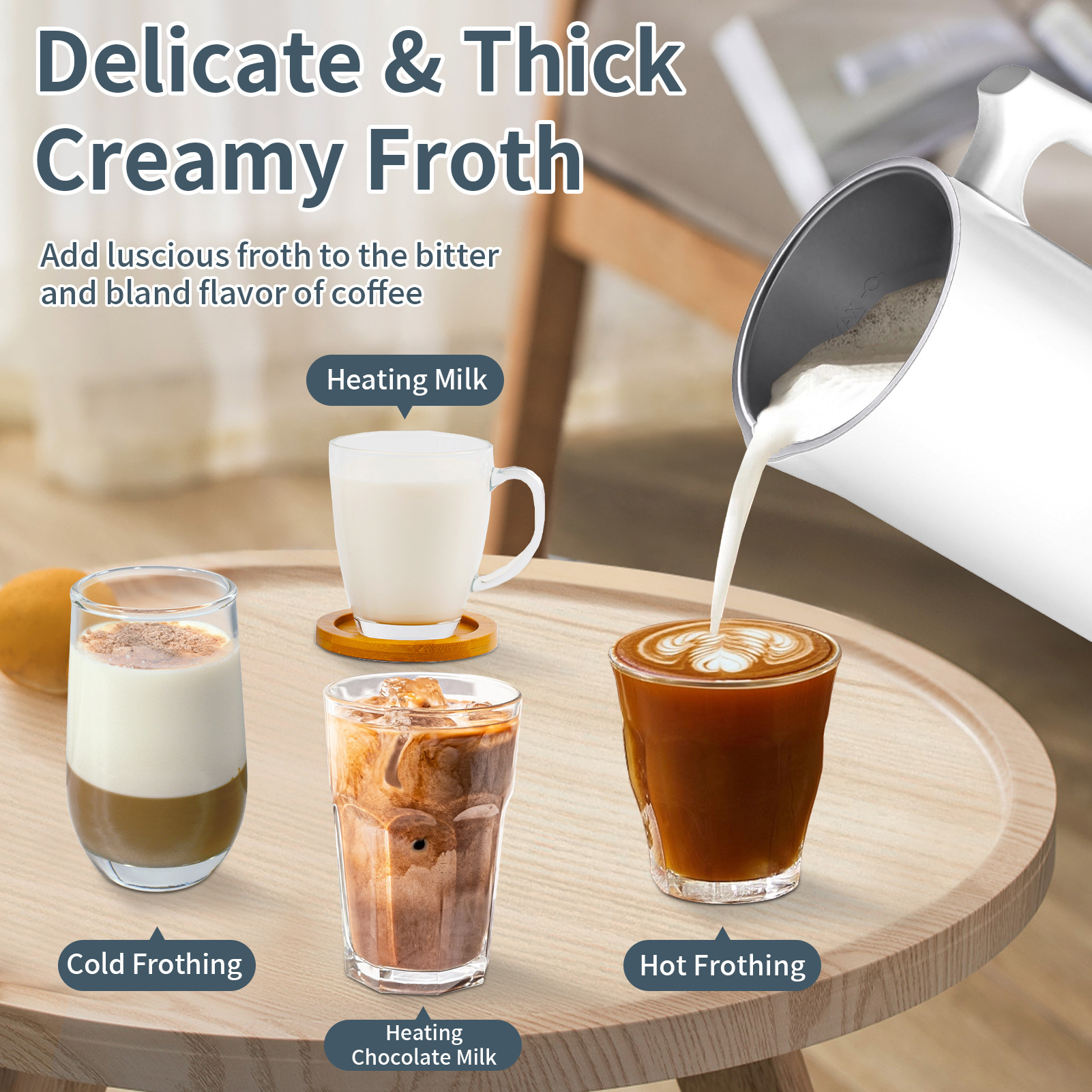 Функция Hot milk, bubbling stir room temperature milk bubble hot chocolate milk