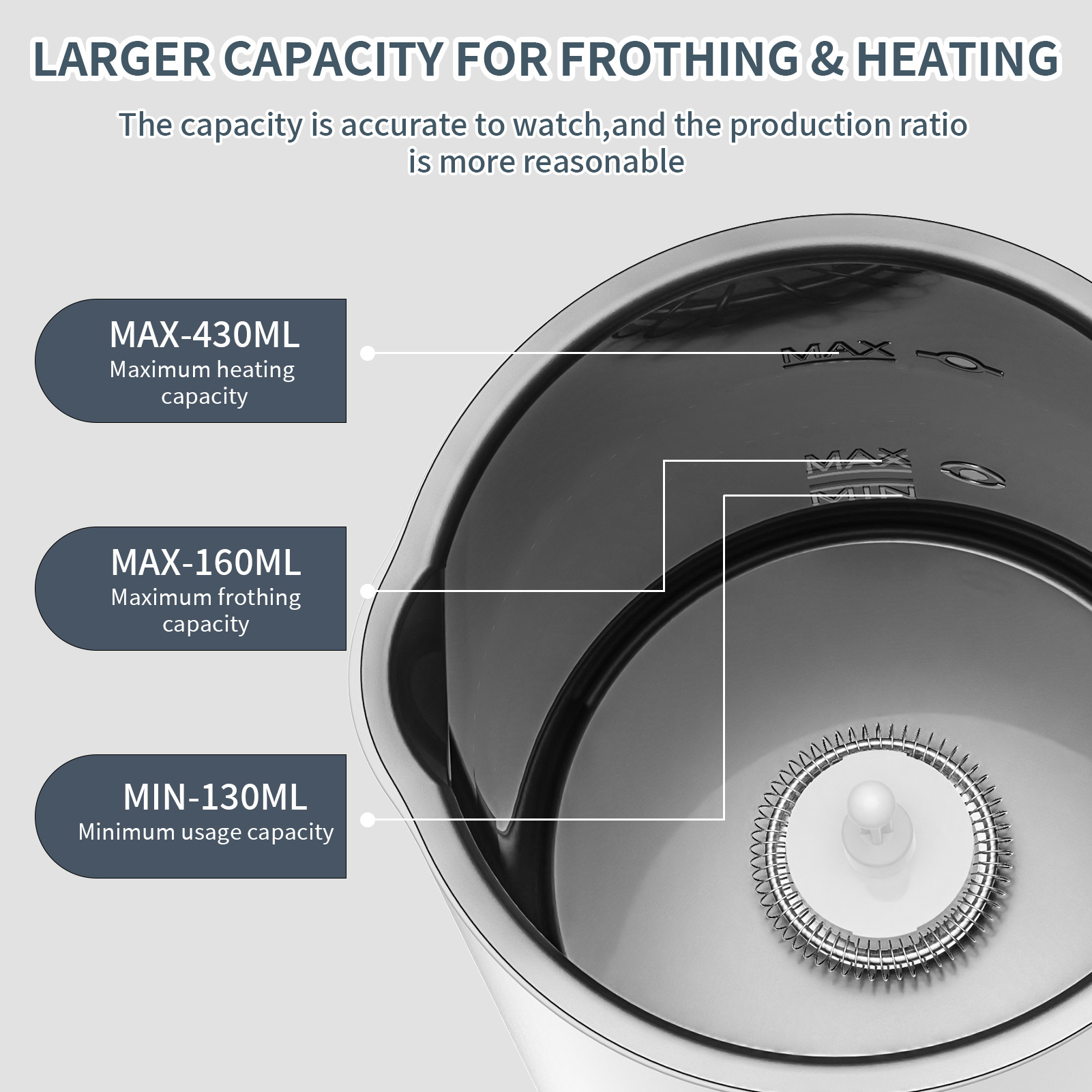 容量:160ML(打泡) 350ML(加热) 590ML(壶体总容量)