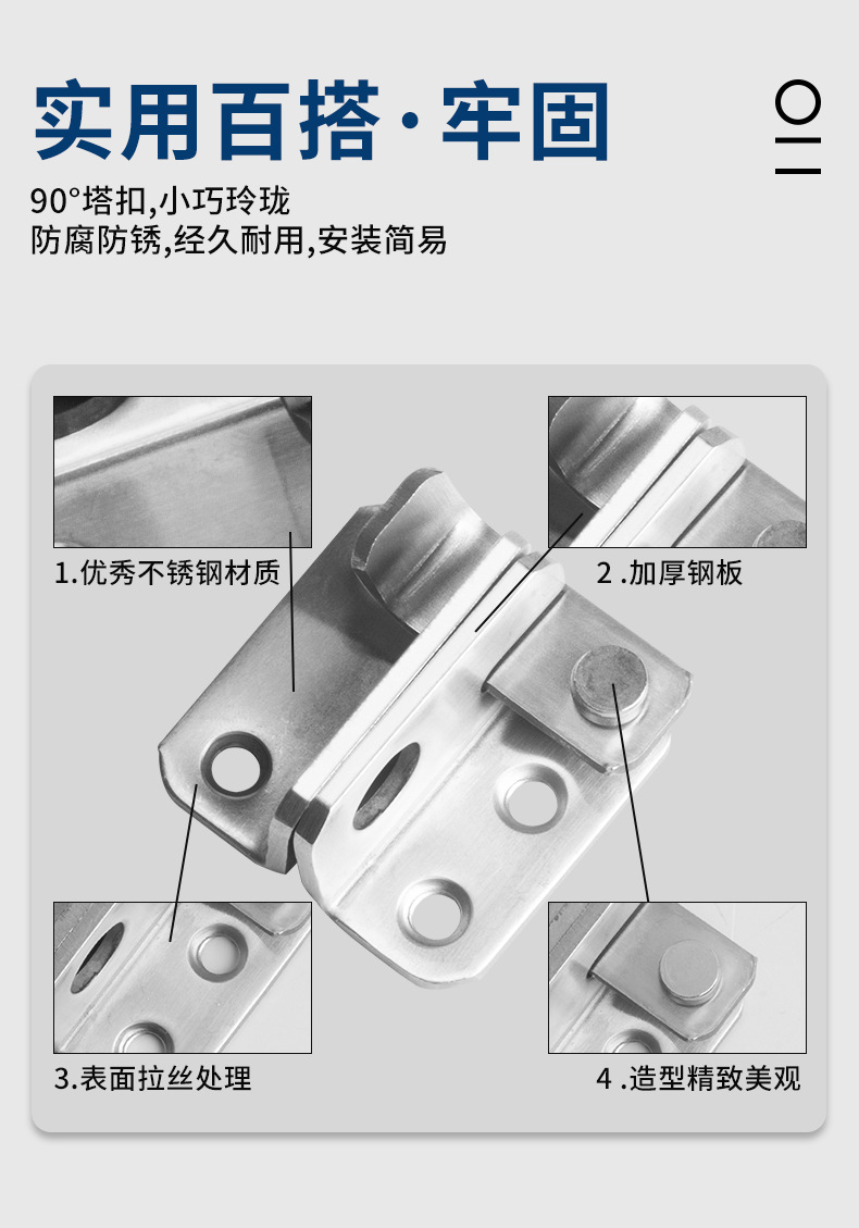 ![]() | Steel door buckle-small size-right opening | ¥1.78 / ≈ 21 ₽ | 61289 | 5333572518812 | |