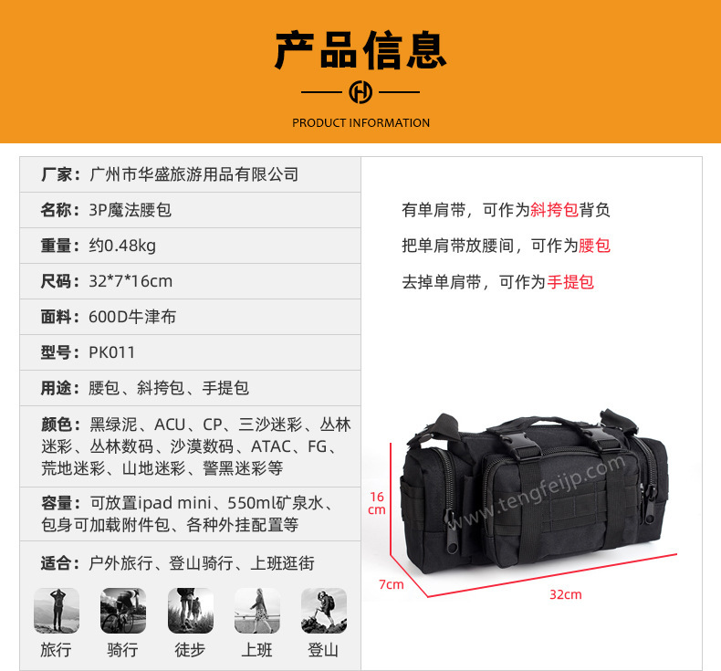 Тактическая поясная сумка Huasheng, многофункциональная, камуфляжная, большая емкость