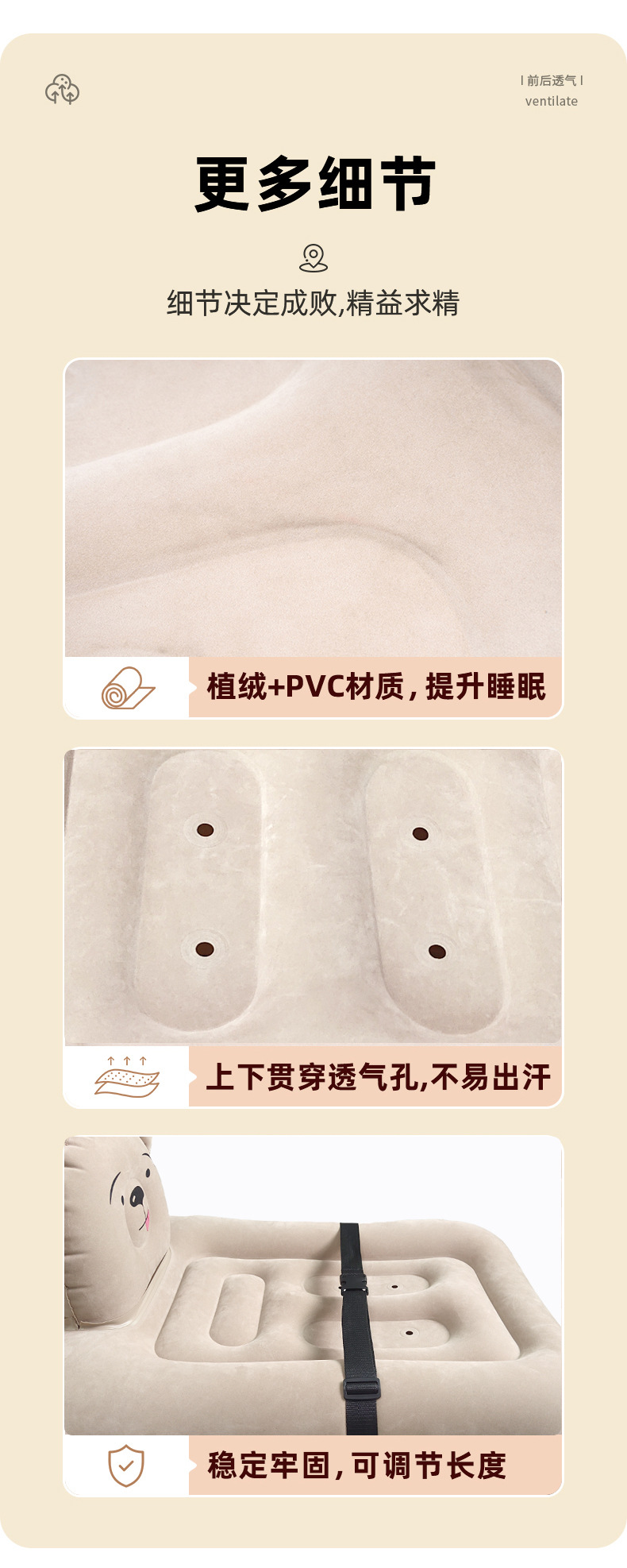 亲爱的车主们,是否在为宝宝出行睡觉不好而苦恼,今天我给大家带来一款特别为儿童设计的充气垫,这款座椅采用上下透气设计,让宝宝无论是在炎炎夏日还是寒冬腊月,都能享受到通风透气的舒适体验,避免了闷热、汗湿等问题,让宝宝的娇嫩肌肤得到更好的呵护