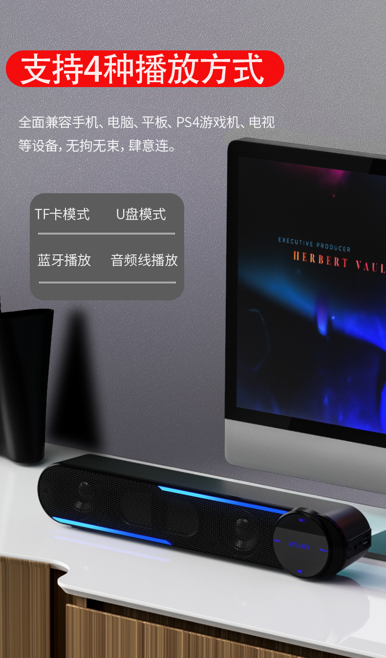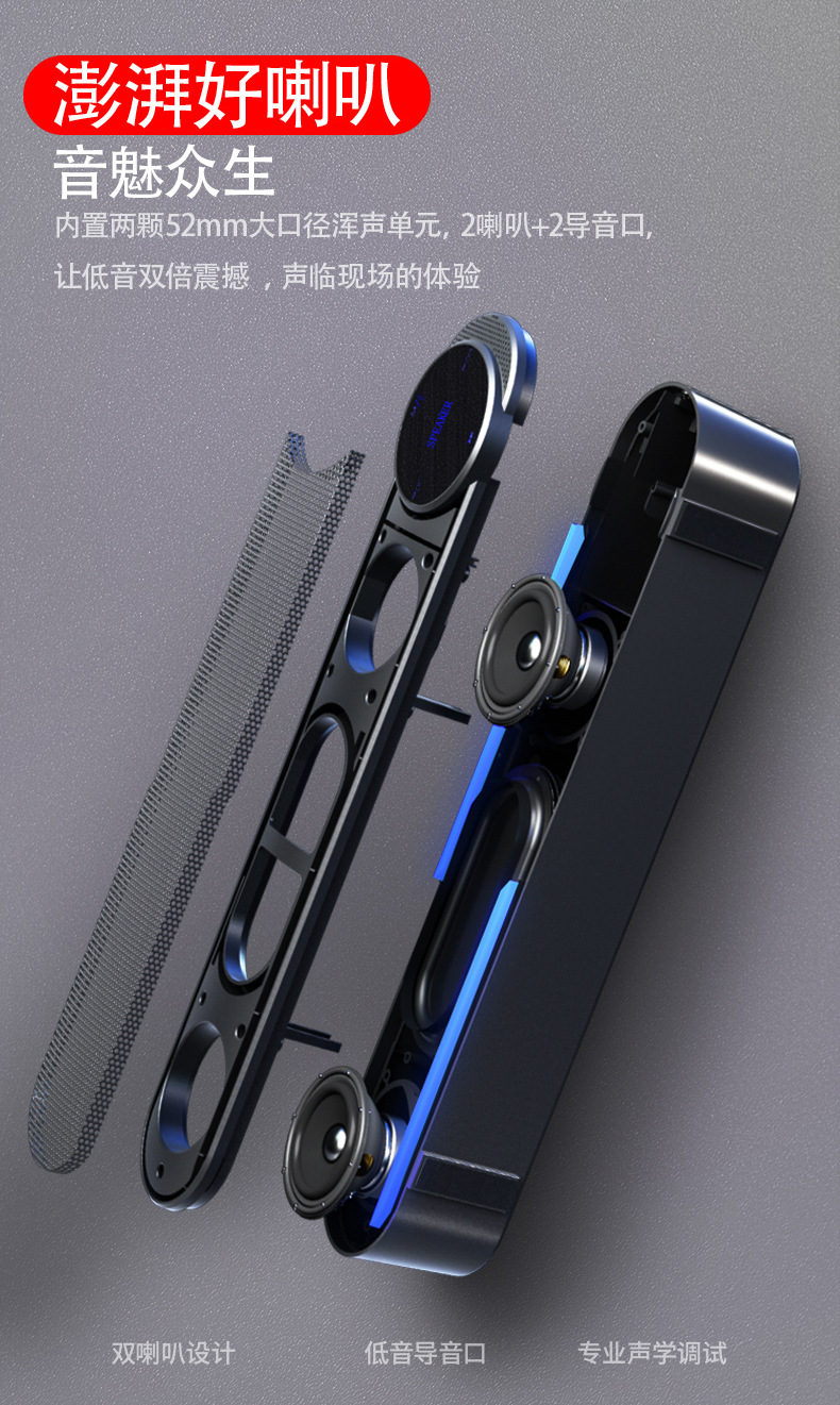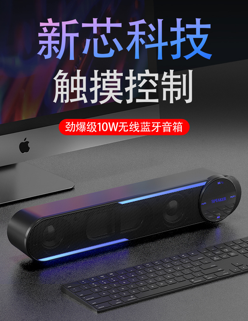 Беспроводная Bluetooth аудио двойная колонка тон компьютерная настольная длинная портативная домашняя колонка сенсорный экран карта USB