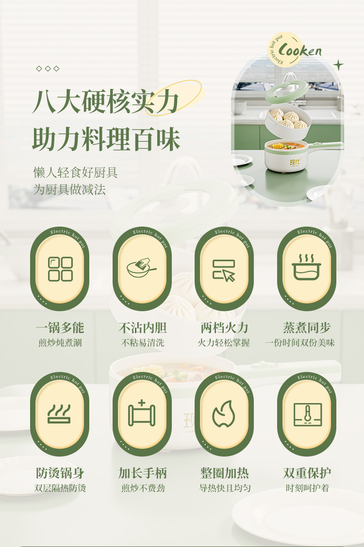 Электрический обогрев/функция горячего котла Steam, Cook, Hot pot