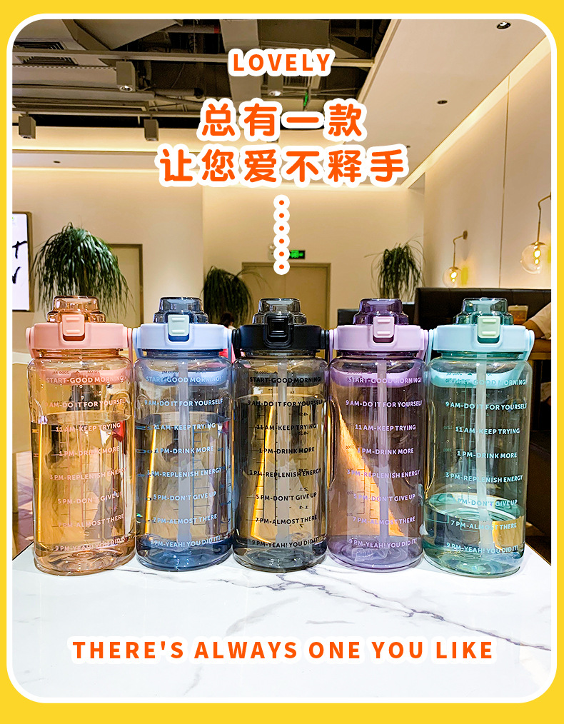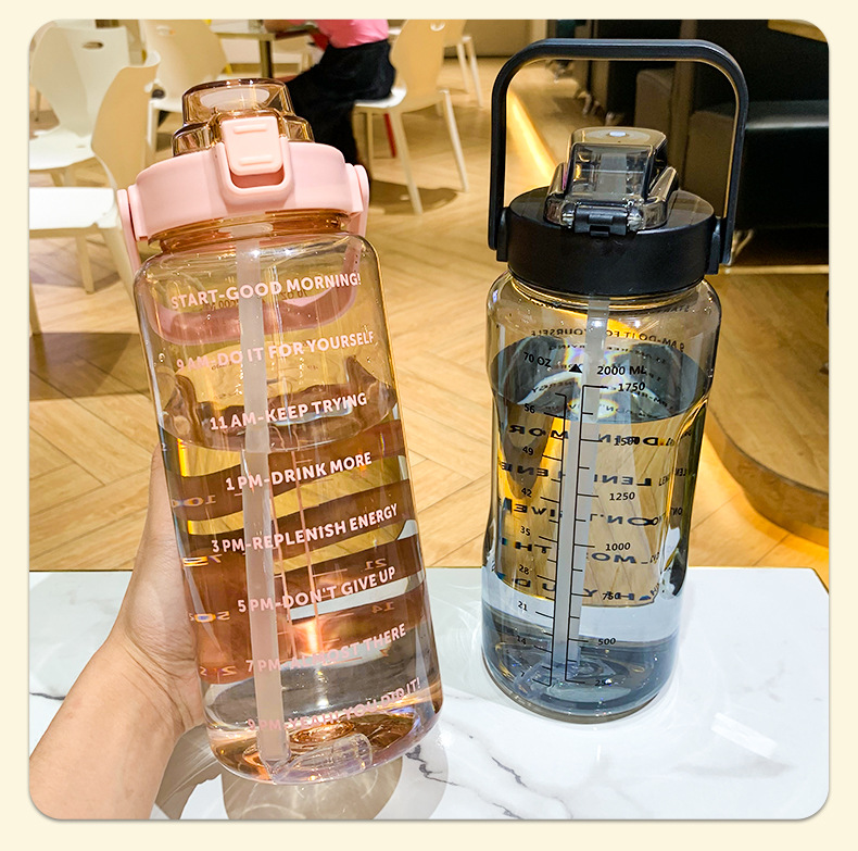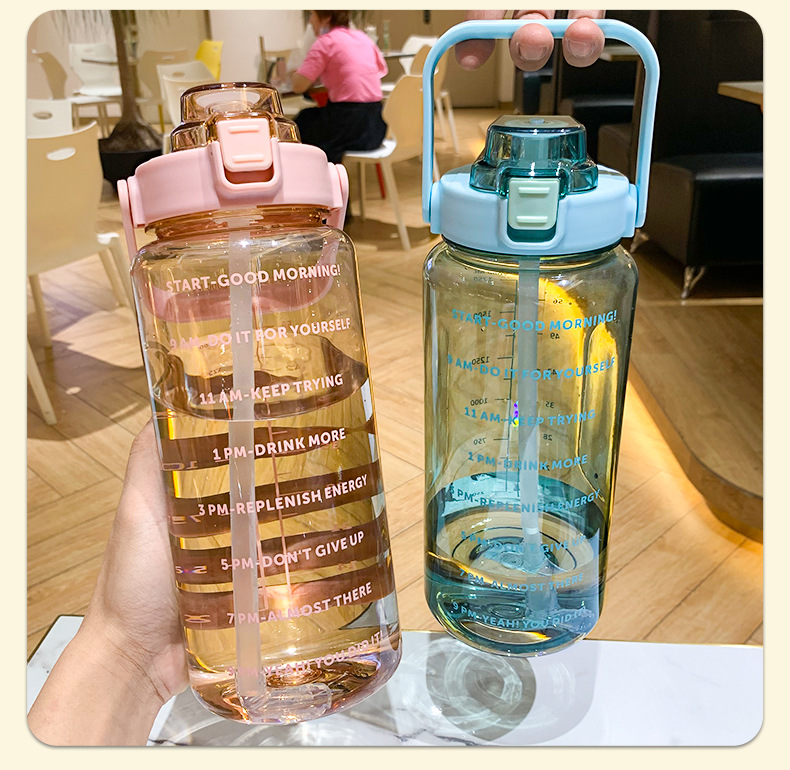 Водяная бутылка большого объема для женщин со straw и шкалой, подходит для спорта и военной подготовки, портативная пластиковая бутылка