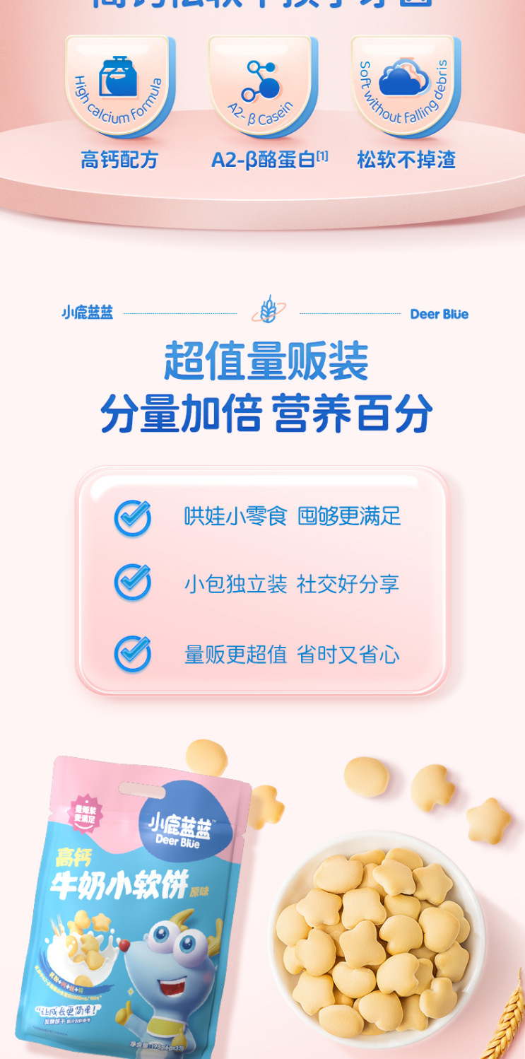 Молоко с высоким содержанием кальция Fawn Blue Маленький мягкий торт мягкие палочки кальций железо цинк печенье без добавления сахара для детей