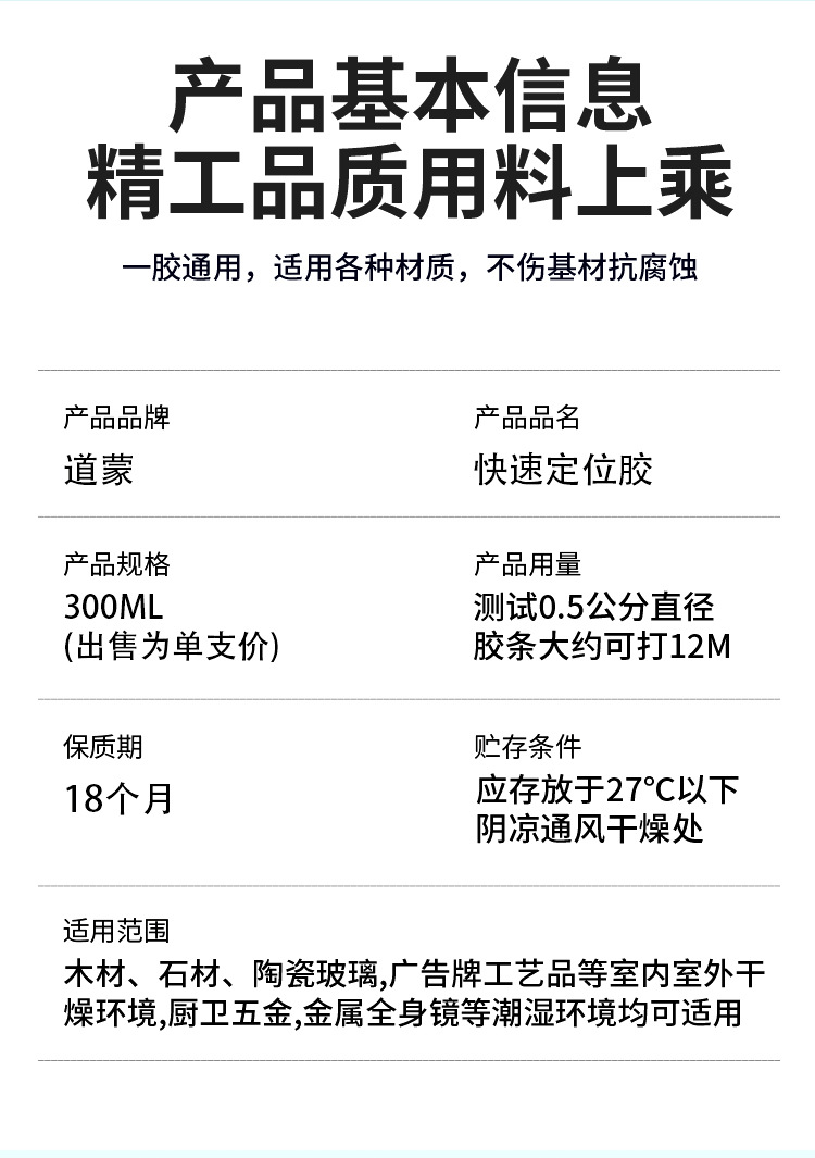 ![]() | Quick positioning nail-free glue single price (transparent) | ¥8.6 / ≈ 104 ₽ | 206259 | 5298622496308 |
