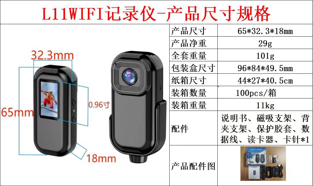 L11Wifi HD 1080P магнитный зажим портативный спортивный рекордер