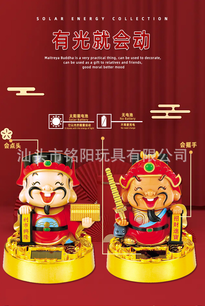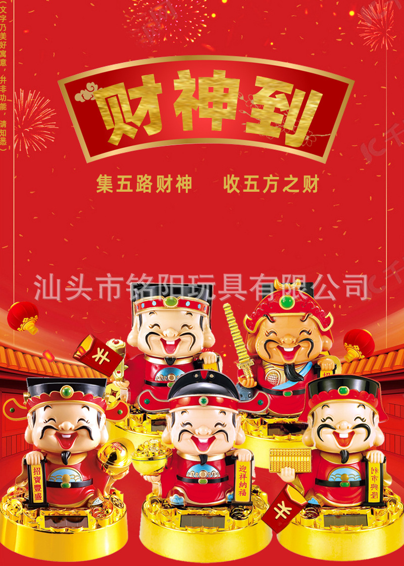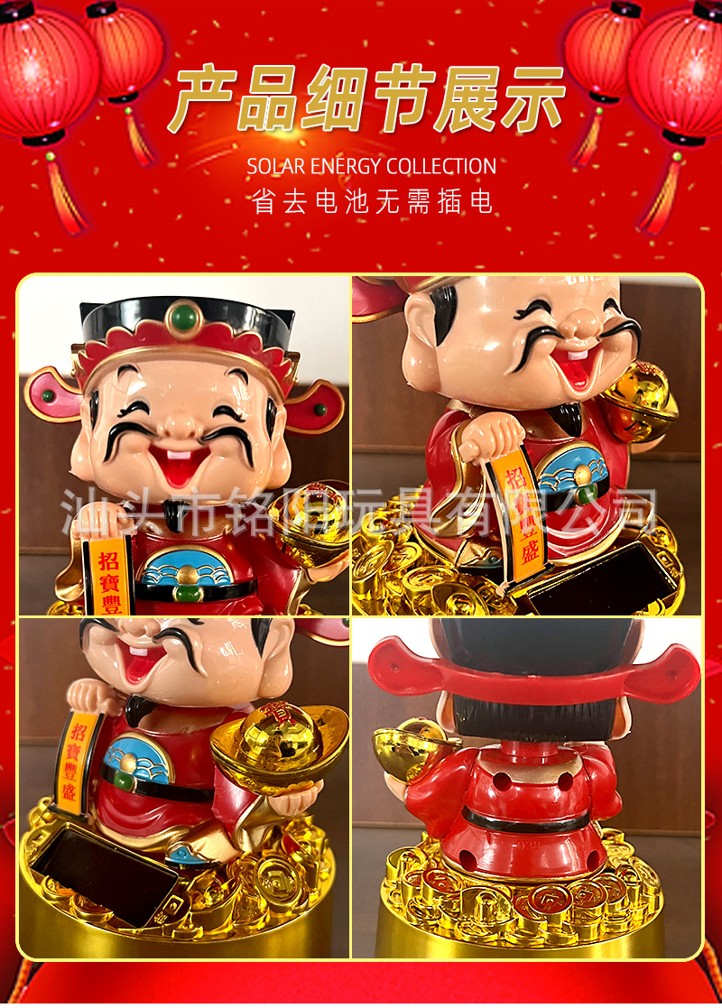 Гуофэн солнечная энергия пятисторонний бог богатства украшение автоматическое кивание настольное украшение подарок на открытие кросс-бордовый