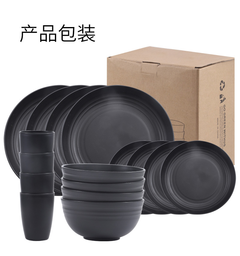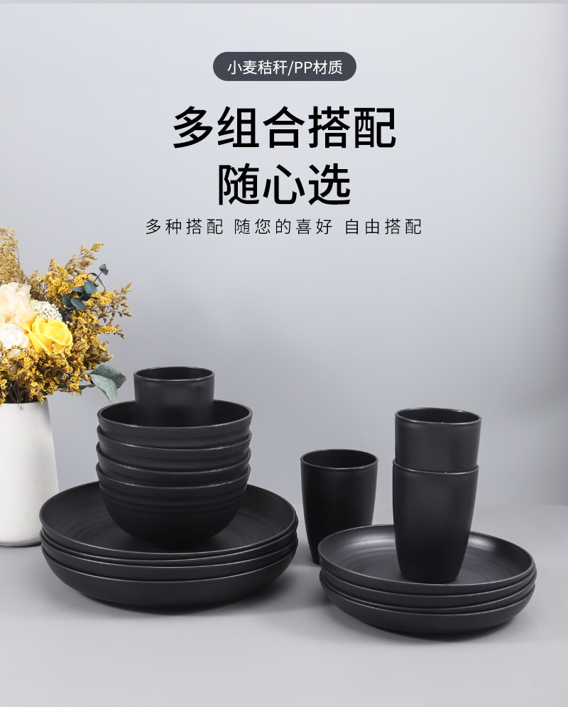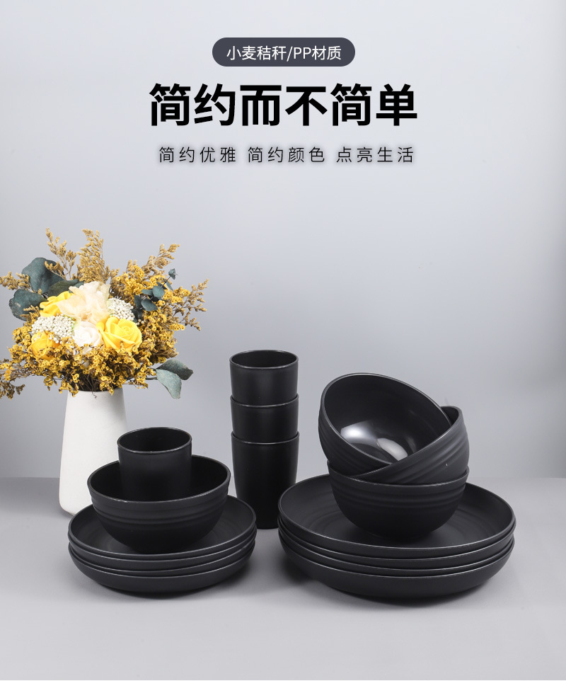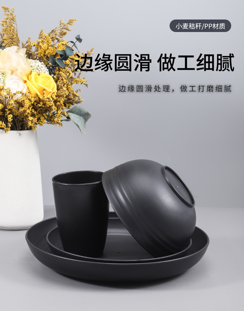 Чёрная тарелка из пшеничной соломы, кружка, миска, столовый набор, подарок из пшеницы