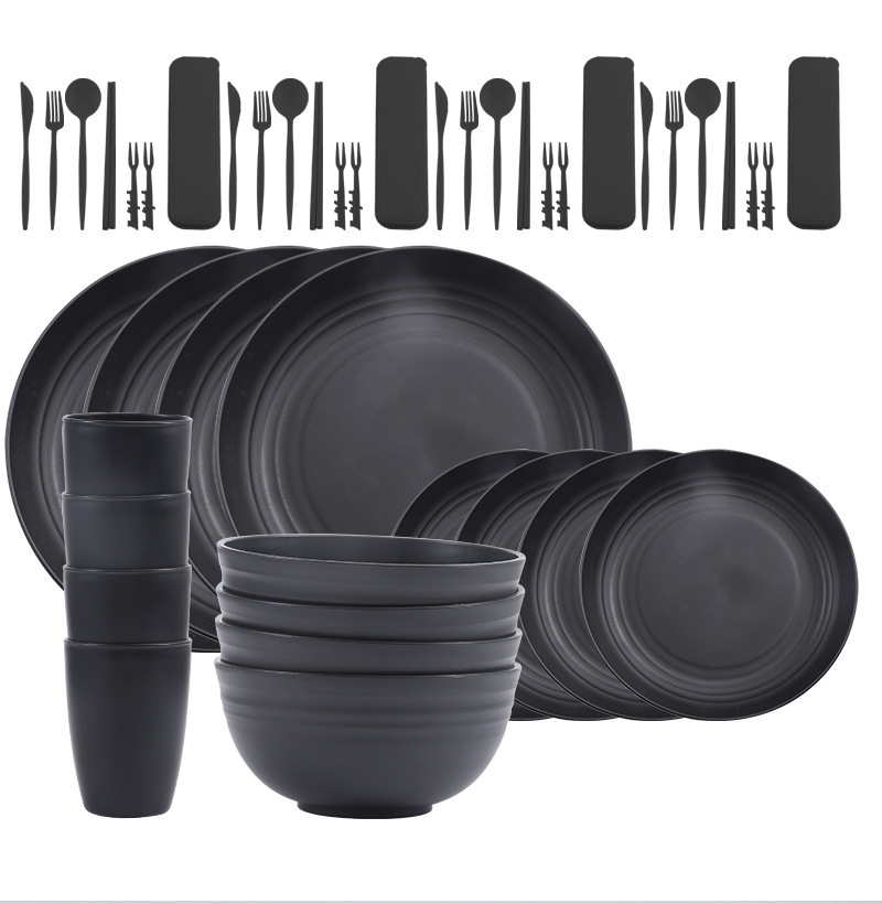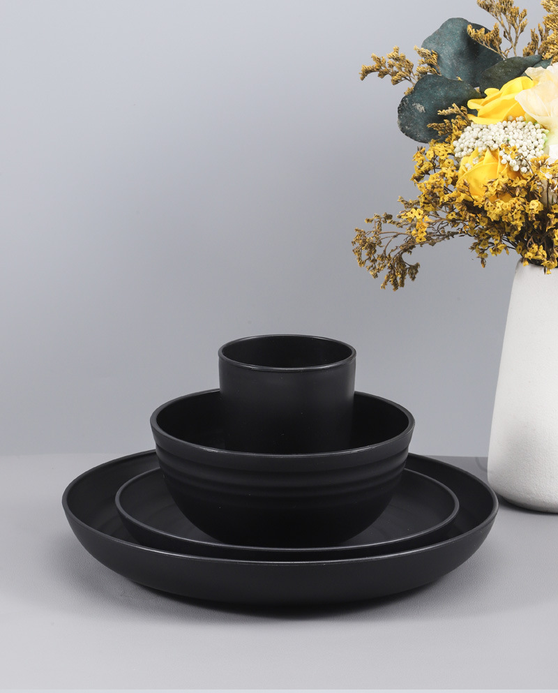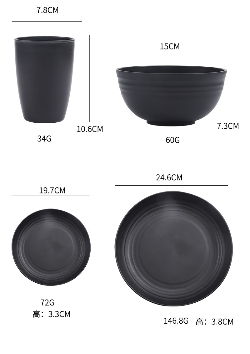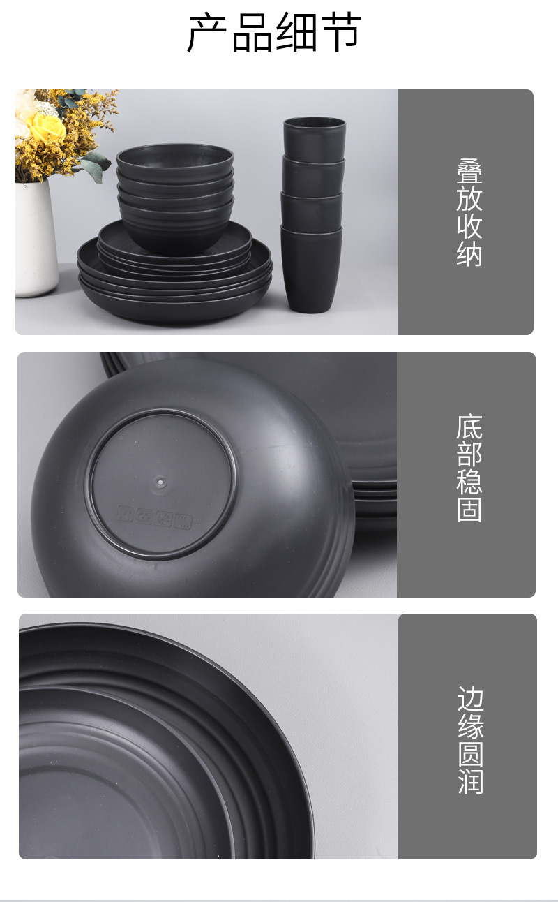 Чёрная тарелка из пшеничной соломы, кружка, миска, столовый набор, подарок из пшеницы