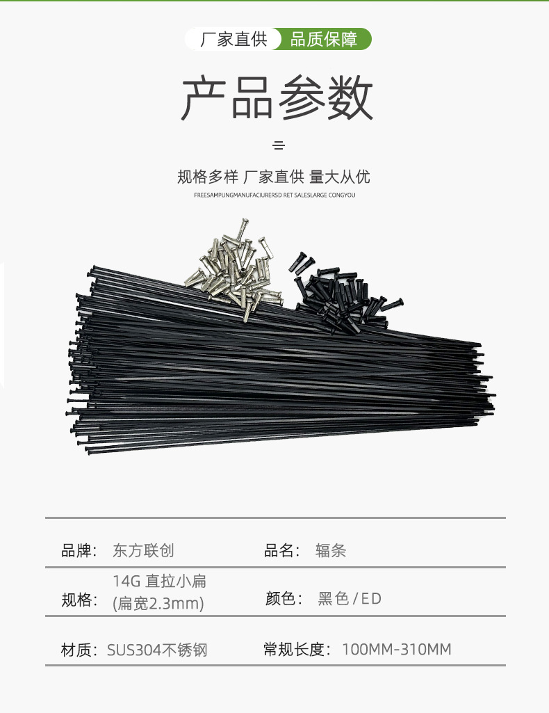 14g304 нержавеющая сталь черная прямая спица маленькая плоская (ширина 2.3мм) для шоссейного велосипеда от фабрики Тяньцзинь