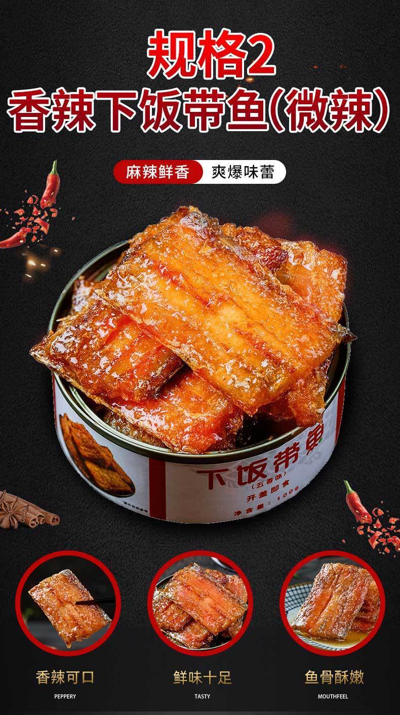 📦 | Spicy flavor (100g canned hairtail factory wholesale) | 100g canned fish can be oem | 1шт: ¥2.20, 20шт: ¥2.00, 100шт: ¥1.80 | 93046 | 5178419816769 |