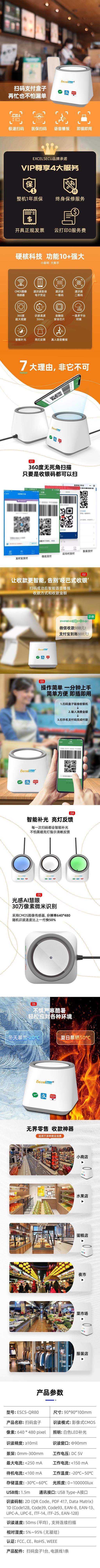Цветовая конверсия Red LED (cloud flash scan code), blue LED (Alipay scan code), green LED (WeChat scan code), white LED (other codes)