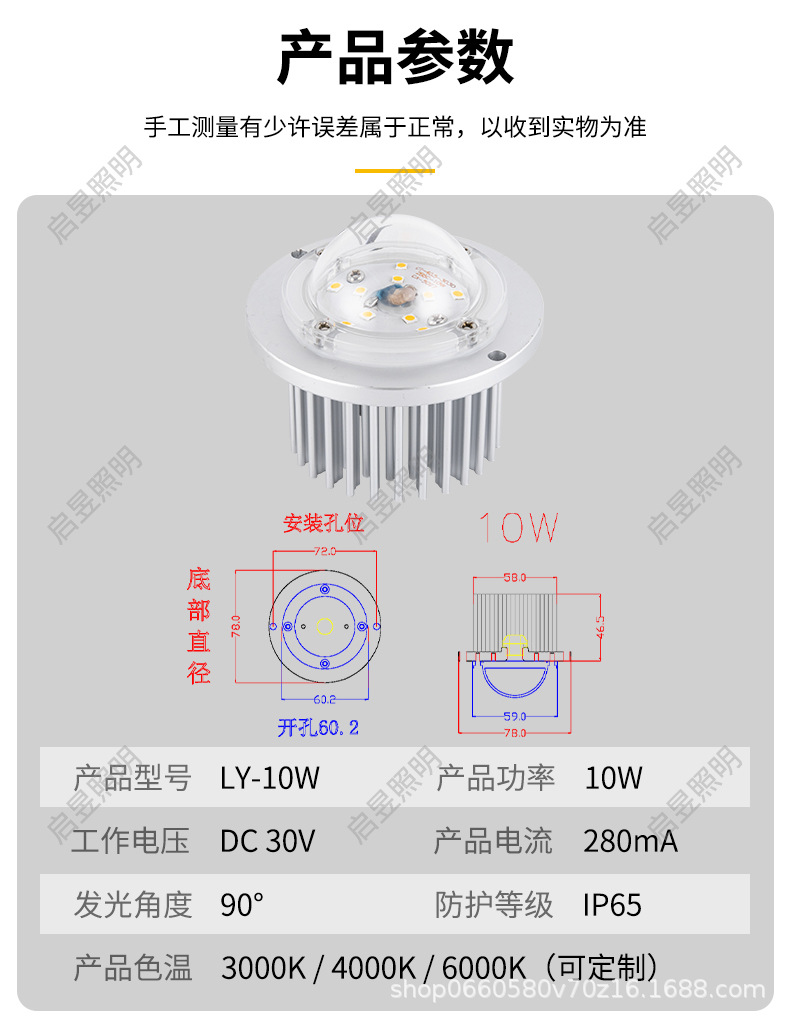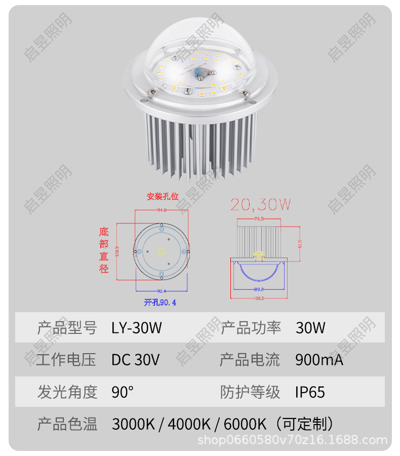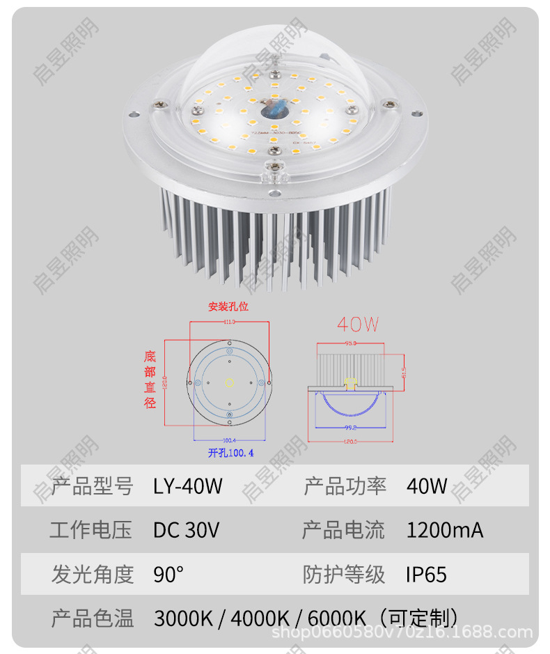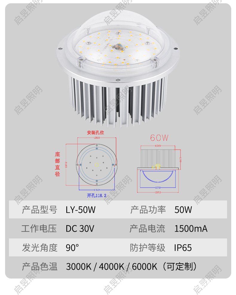 Круглый светодиодный модуль лампы, выпуклая линза 10W20W30W40W50W60W, магнолия, китайский источник света
