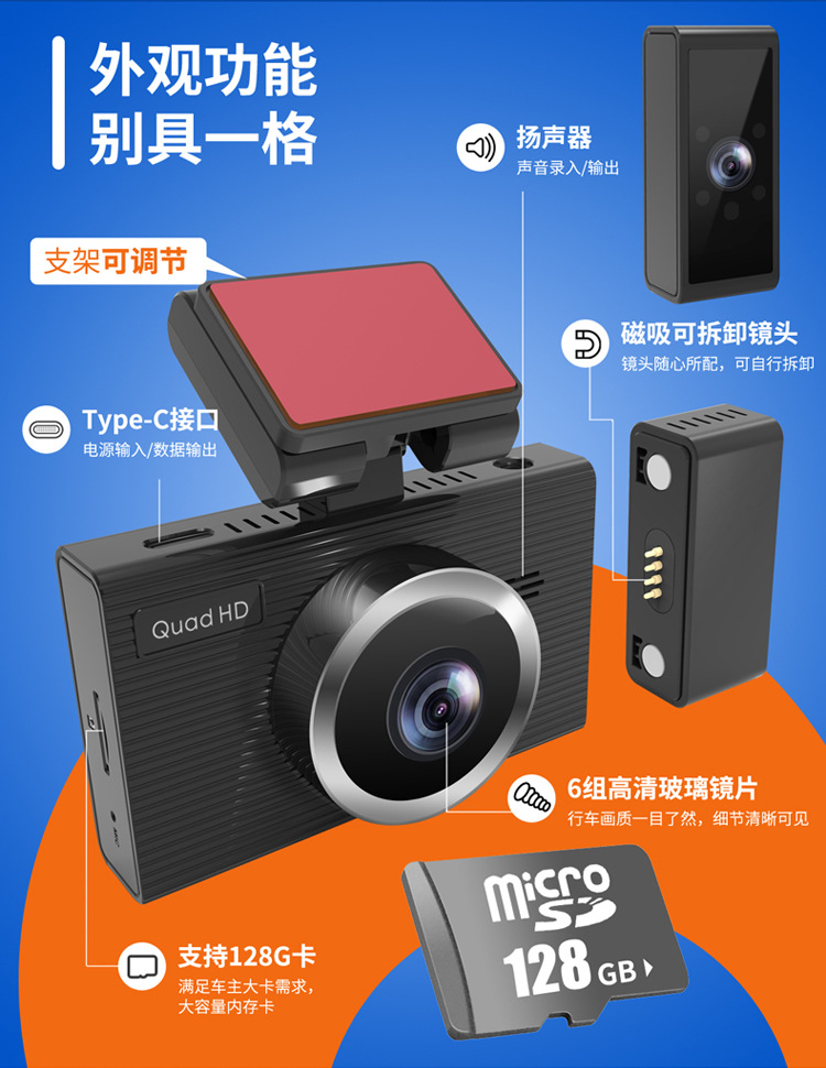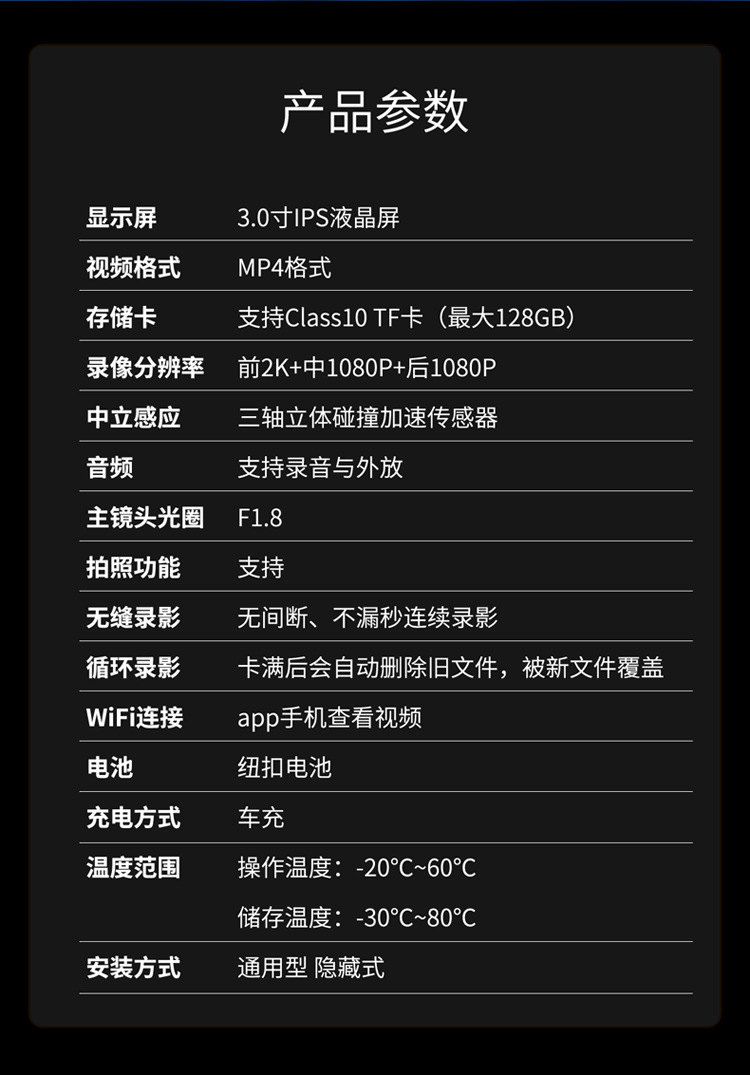 功能:支持夜视,循环录像,手机WiFi互联,重力感应等