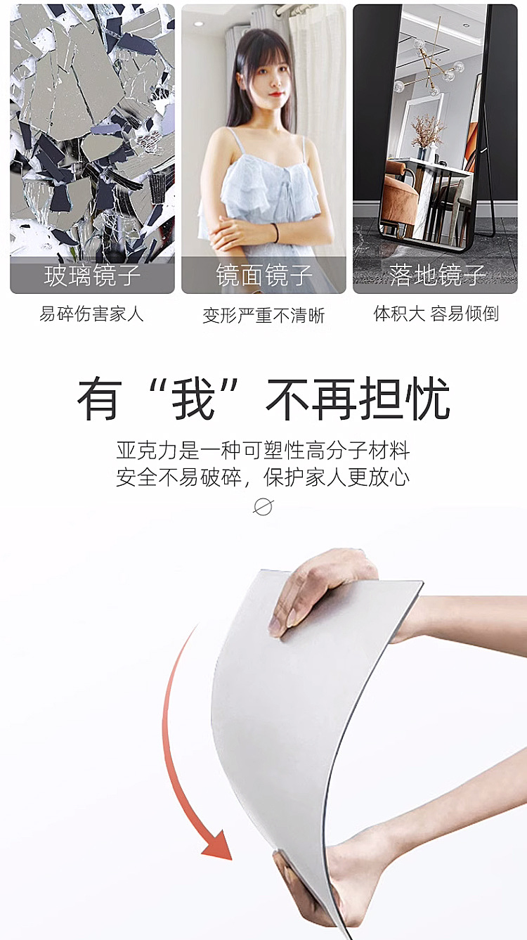 Акриловое зеркало, настенное самоклеящееся мягкое зеркало, зеркало для макияжа в общежитии, полное зеркало для наряжания