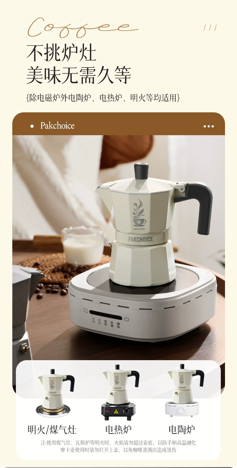 ![]() | Double-valve Moka pot | Cream white 2-person filter paper cloth powder device electric ceramic stove | ¥108.0 / ≈ 1 303 ₽ | 911 | 5486377222156 | |