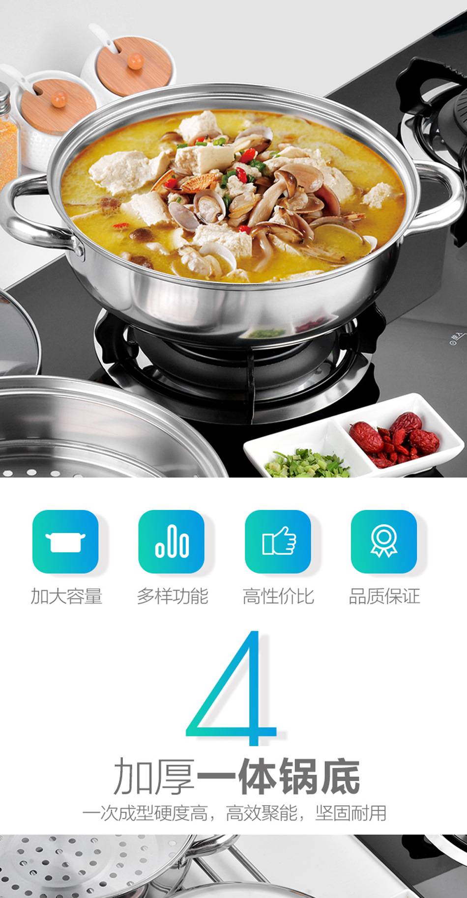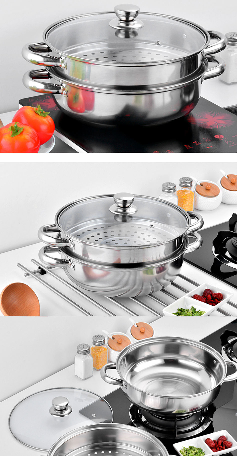 Пароварка из нержавеющей стали, двойной слой, утолщенная, 28 см, домашняя, многоуровневая, для рыбы, однослойная горячая кастрюля, переносная подарочная кастрюля