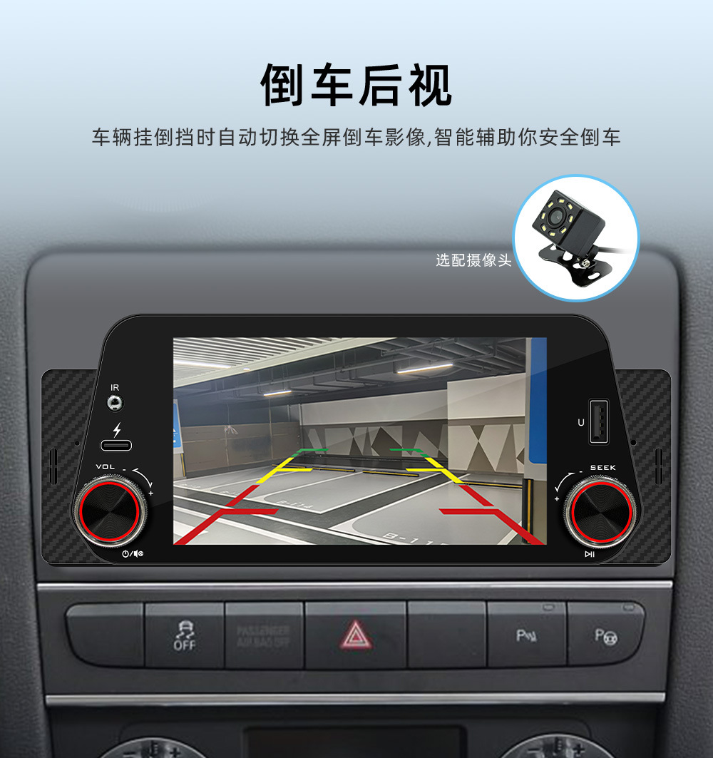 ♦高清倒车视屏输入(摄像头需选配),车辆挂倒挡时自动切换全屏倒车影像,智能辅助你安全倒车;
