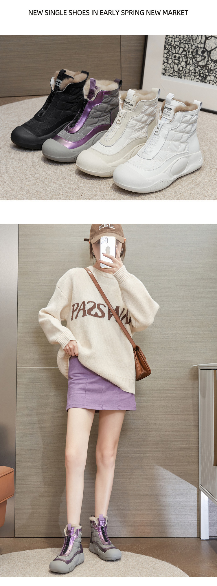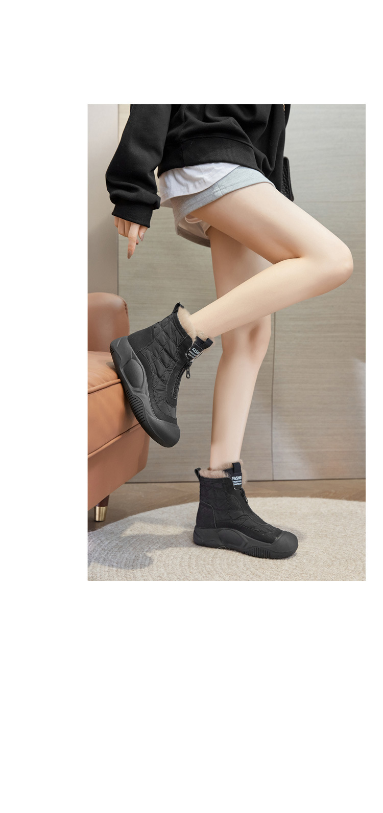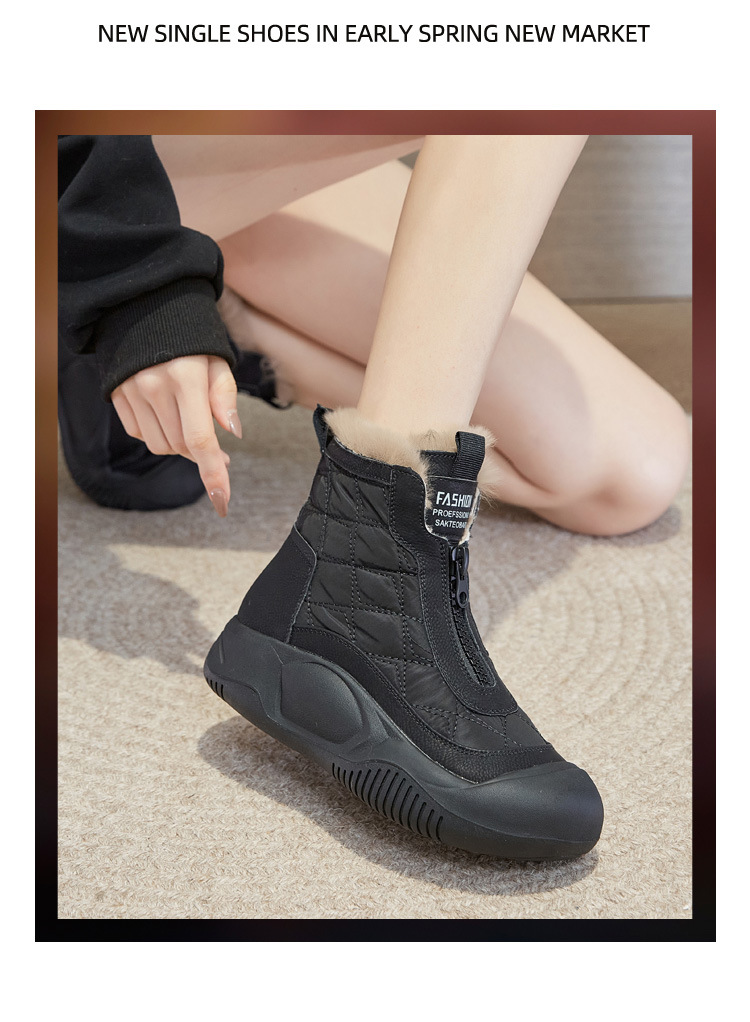 Снегоступы для женщин 2025 осень-зима новый стиль с молнией, утепленные короткие сапоги, зимние повседневные высокие толстосоленные обувь