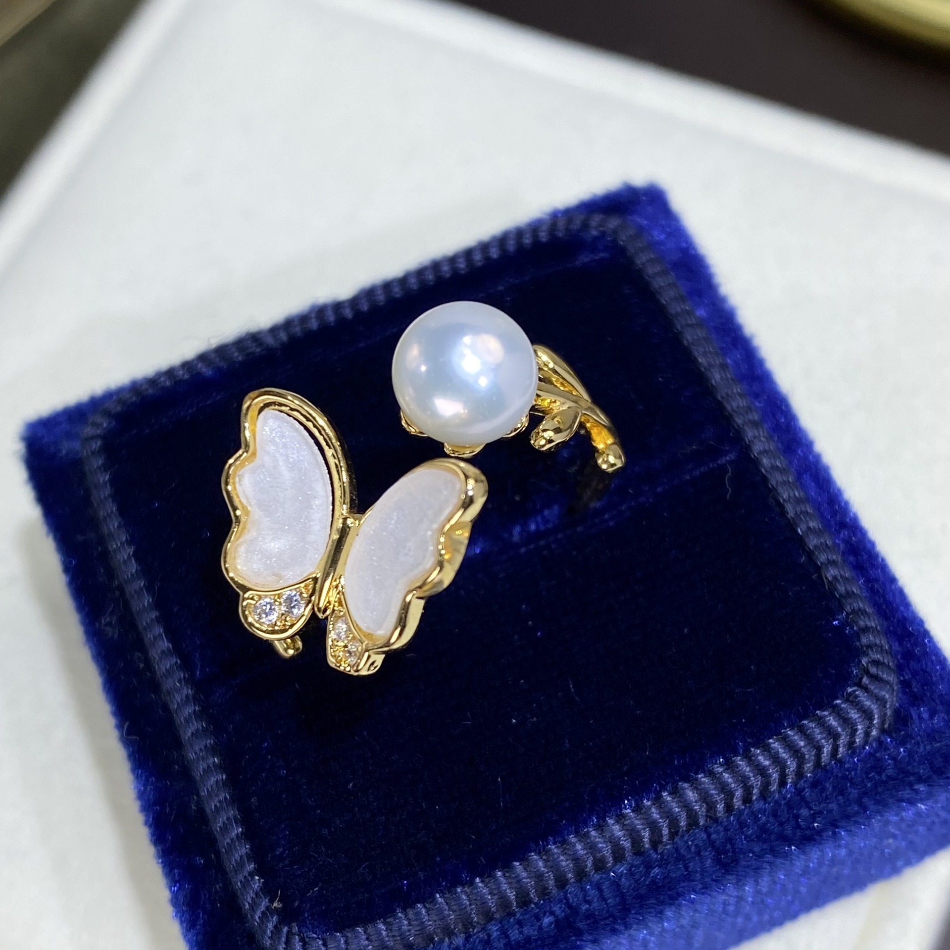 Оптовая продажа кольца с натуральным пресноводным жемчугом для женщин, легкая роскошь, регулируемое, сильный свет, эффектные живые взрывы