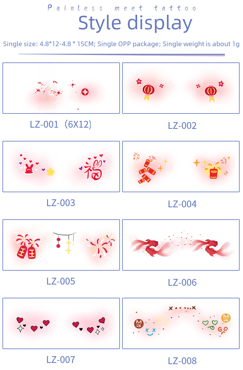 ![]() | Lz-005 (4.8*12cm new year) | Multiple specifications | 2шт: ¥0.60, 500шт: ¥0.50, 2000шт: ¥0.40 | 99993 | 5844443966874 | |