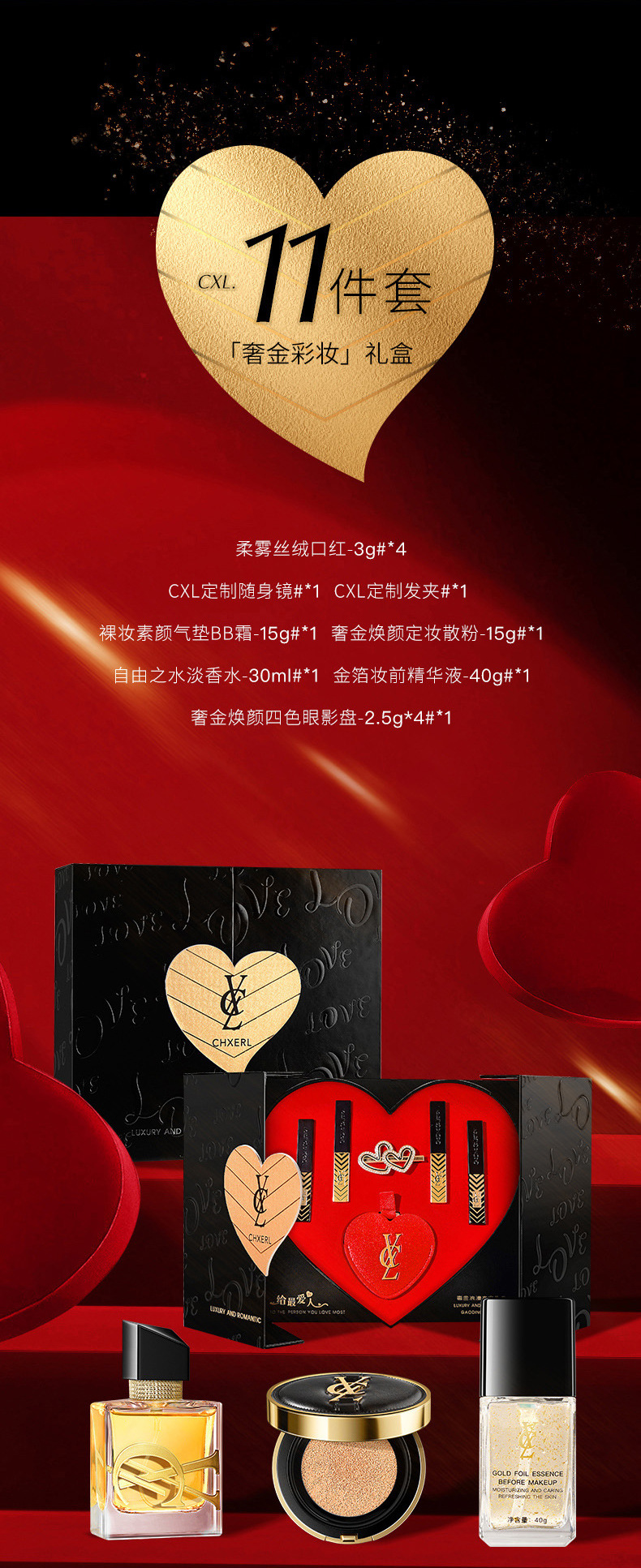 Xiangxi'er роскошный золотой романтический парфюмерный набор губная помада тени для век 11 предметов подарочный набор на День святого Валентина подарок на день рождения для девушки