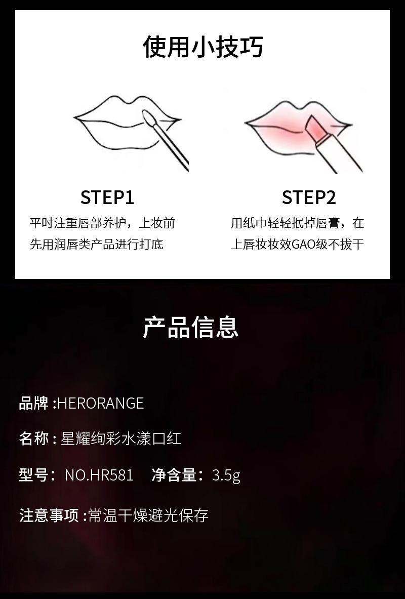 Название продукта Herorange starry colorful watery lipstick