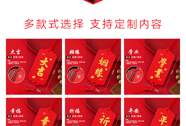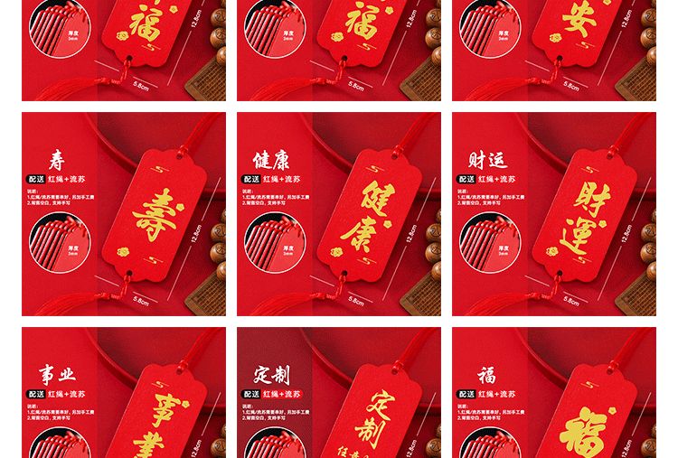 ![]() | Hot stamping wishing brand [fu] | 5.8x12.8cm | ¥0.85 / ≈ 10 ₽ | 29711 | 5462412714357 | |