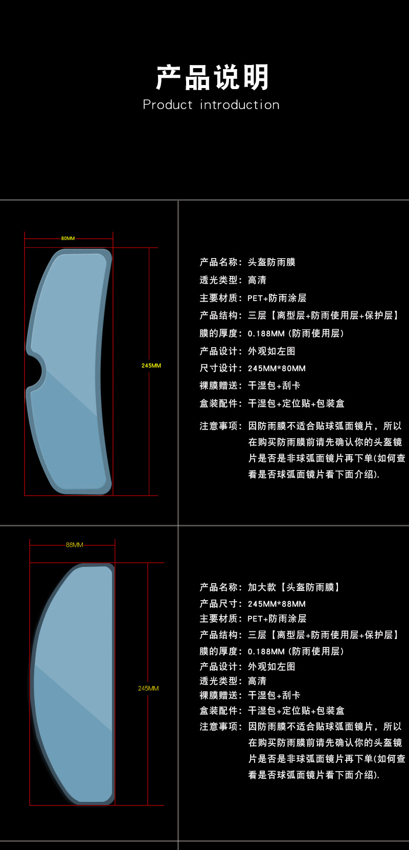 ![]() | Thick glue type [helmet rainproof film] is attached outside (english box) | ¥2.1 / ≈ 25 ₽ | 999999 | 6154345270581 | |