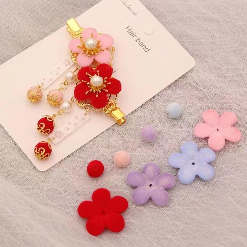 Флокированные пятилистные акриловые зимние бабочки с круглыми бусинами, флокированные лепестки, DIY аксессуары для волос, заколка, ободок, аксессуары с бахромой