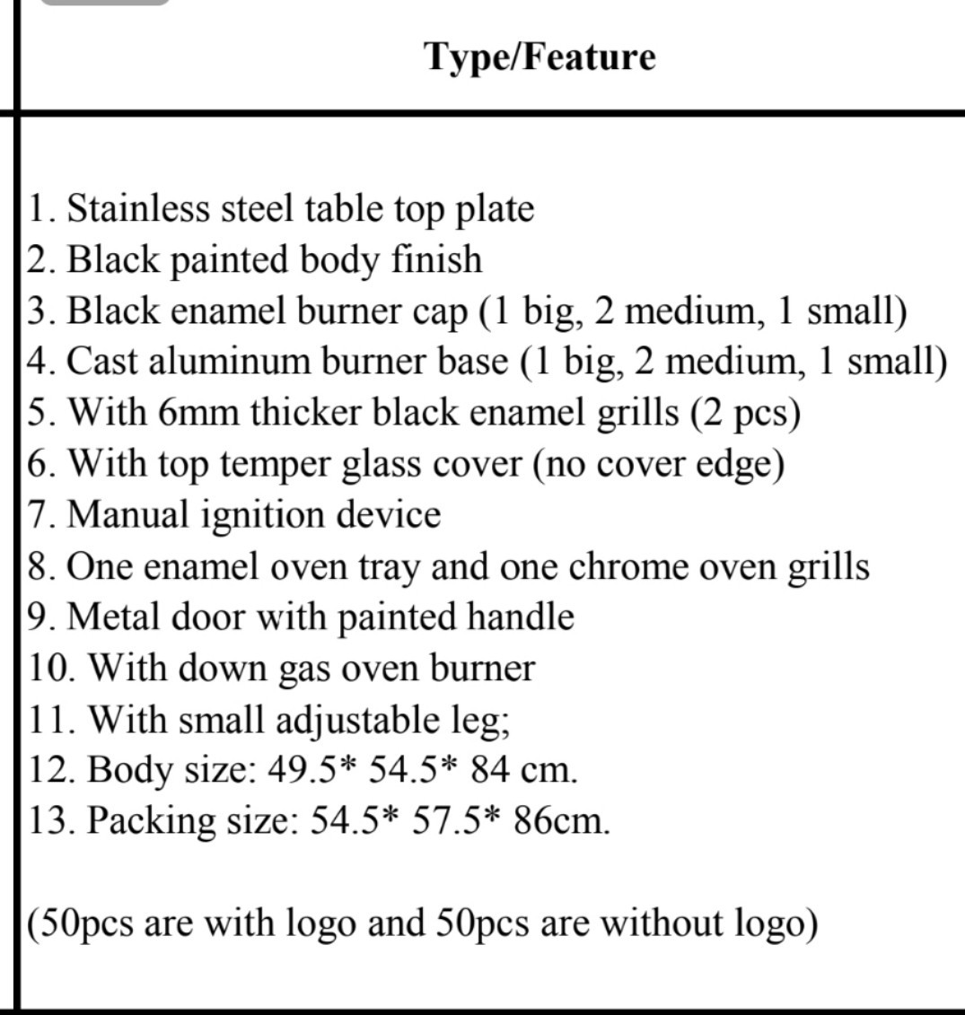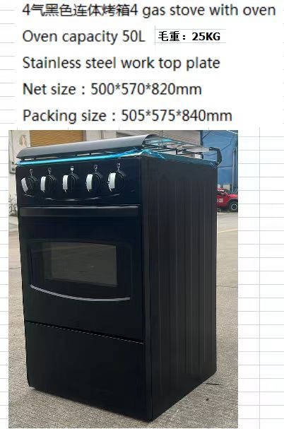 Газовая печь с вертикальной плитой, одноцелая, 4 газовые конфорки, аэрированная печь 50X50