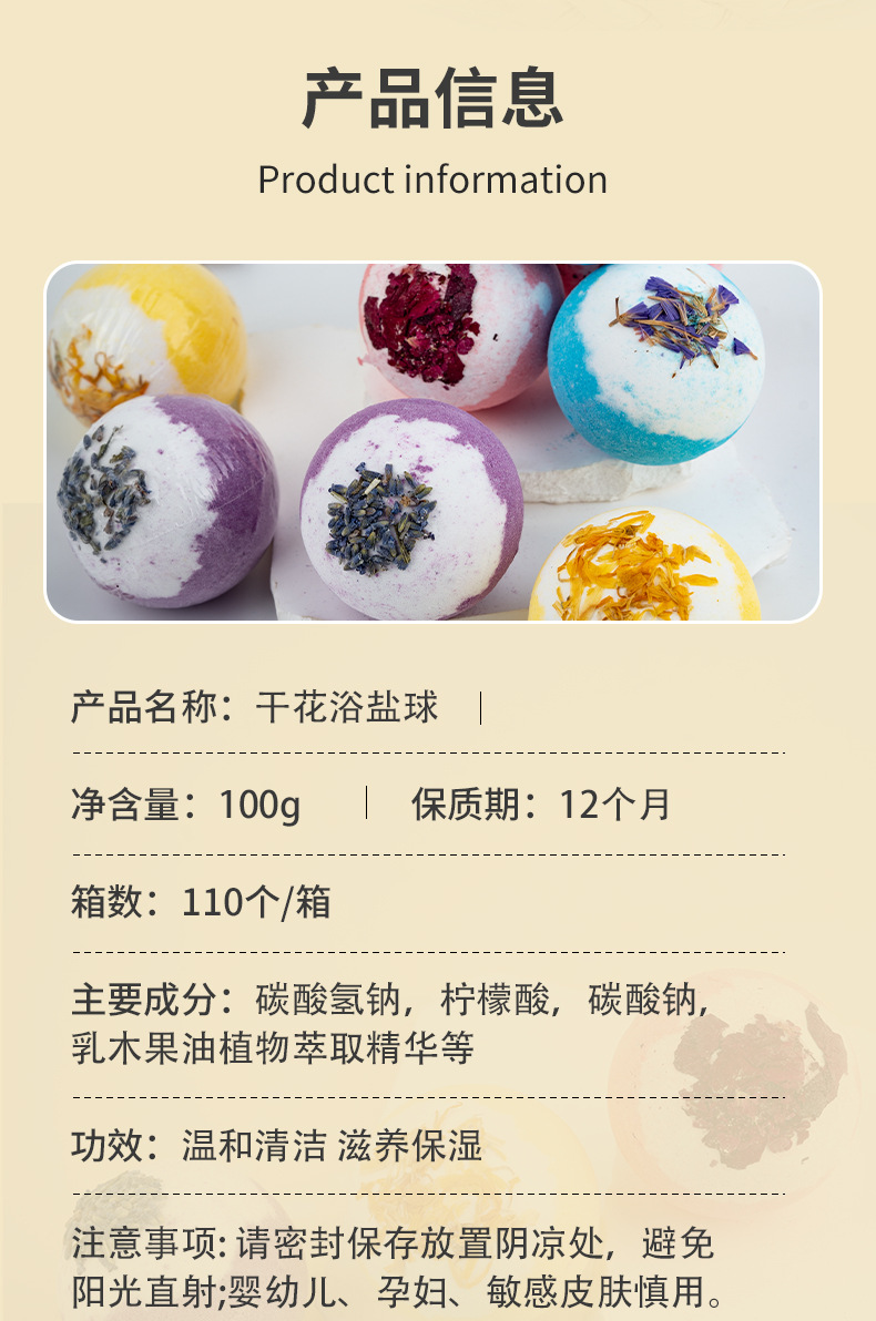 Кросс-бордерная бомбочка для ванны с сухими цветами 100г, оптом