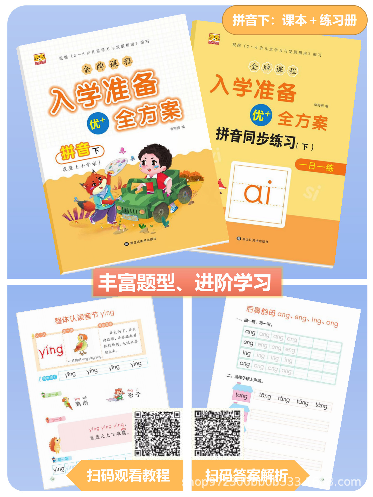 Полный план подготовки к поступлению, второй том учебника для дошкольников, язык, математика, пиньинь, книга для практики