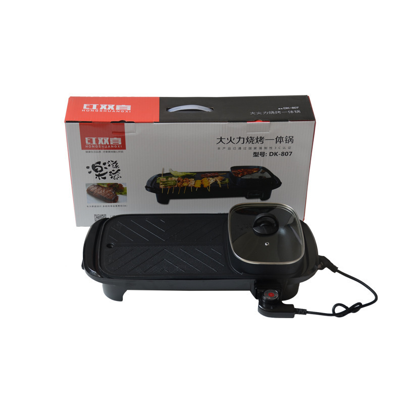 Электрическая кастрюля Double Happiness Shabu-shabu, многофункциональная, для домашнего использования, корейская сковорода для барбекю, электрическая горячая кастрюля