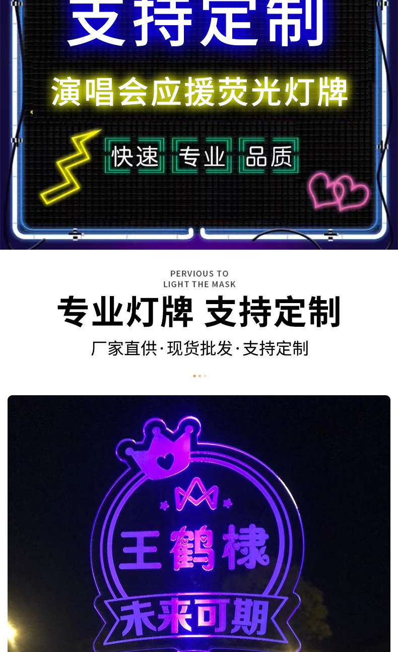 Световая карточка для концерта Wang He, флуоресцентная, настраиваемая, акриловая реклама