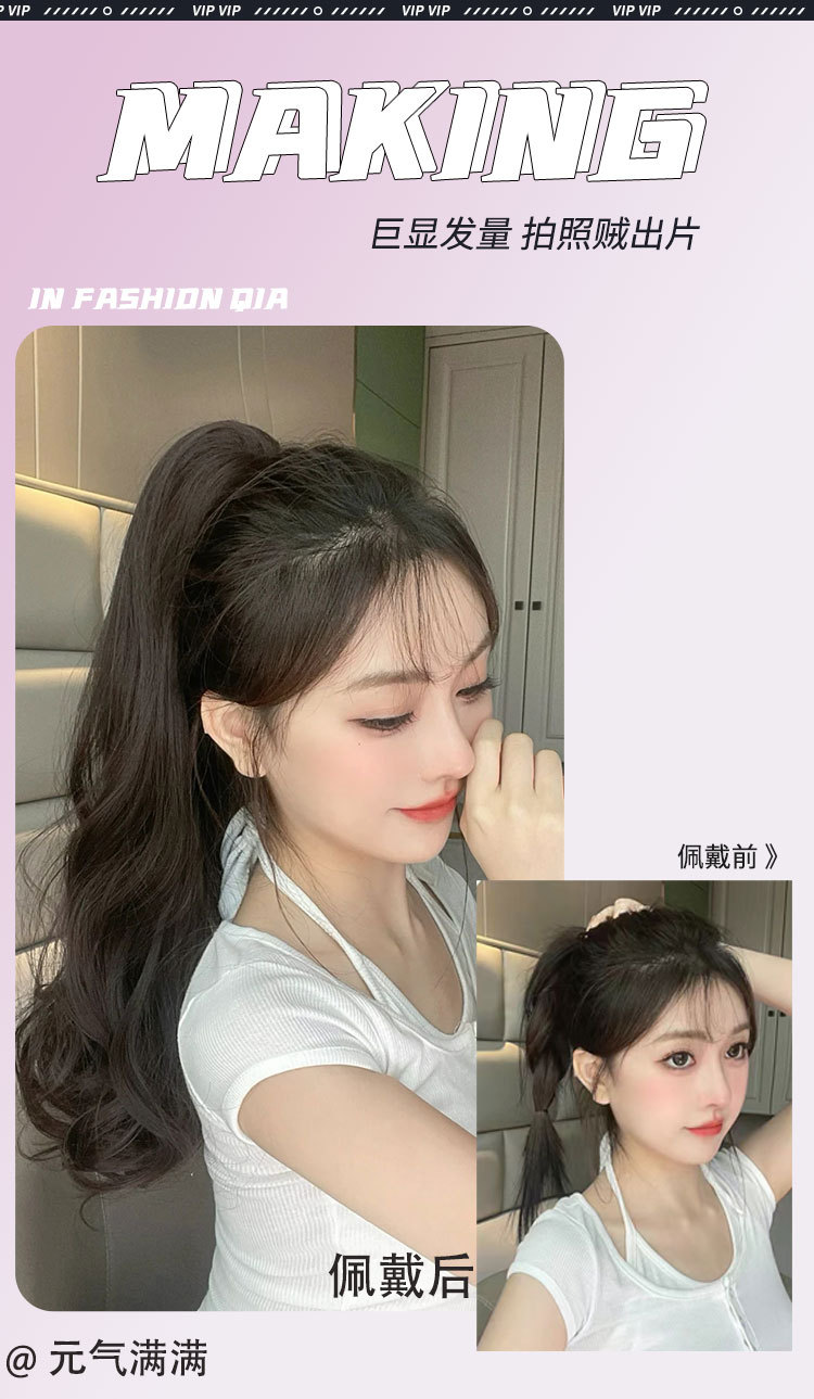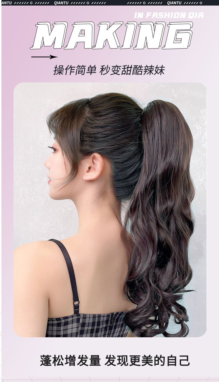 Парик хвостик для девочек длинные кудрявые волосы заколка высокий хвост большие волны натуральные реалистичные пушистые волосы увеличения прядь для наращивания волос