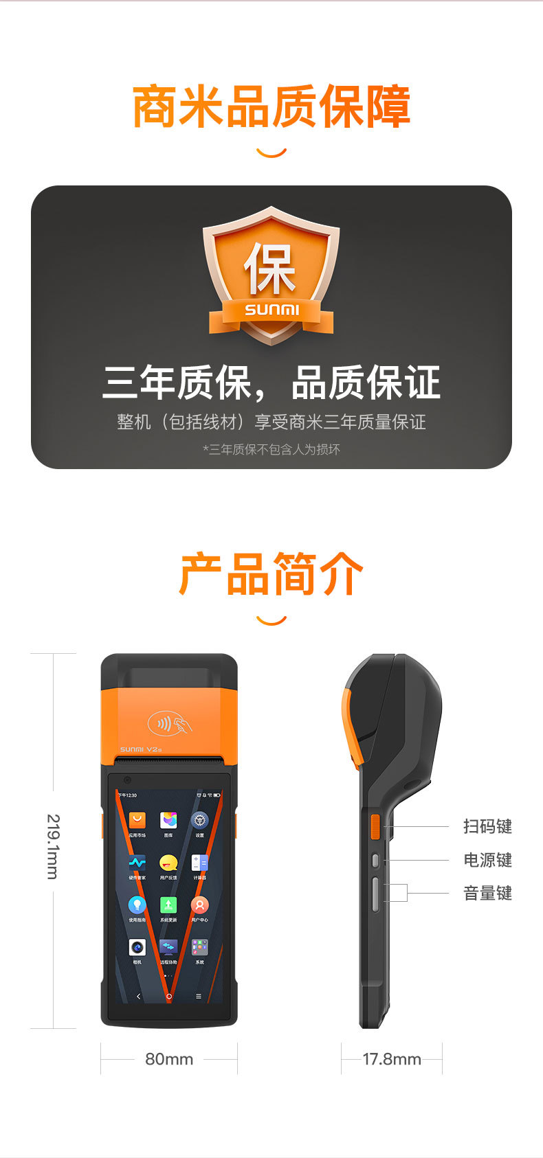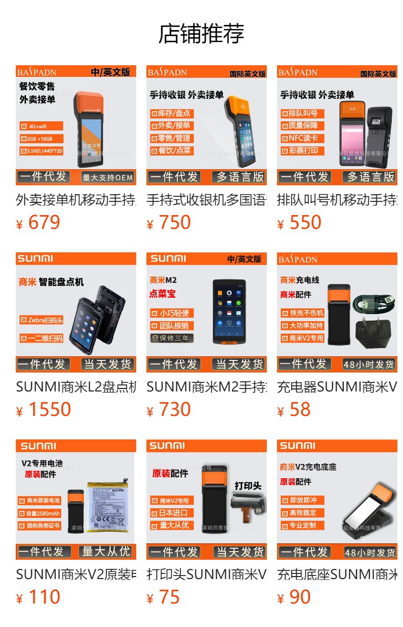Мобильный ручной кассовый аппарат Sunmi V2S Принтер этикеток и чеков Многофункциональный прием заказов Сканирование кода Оплата V3