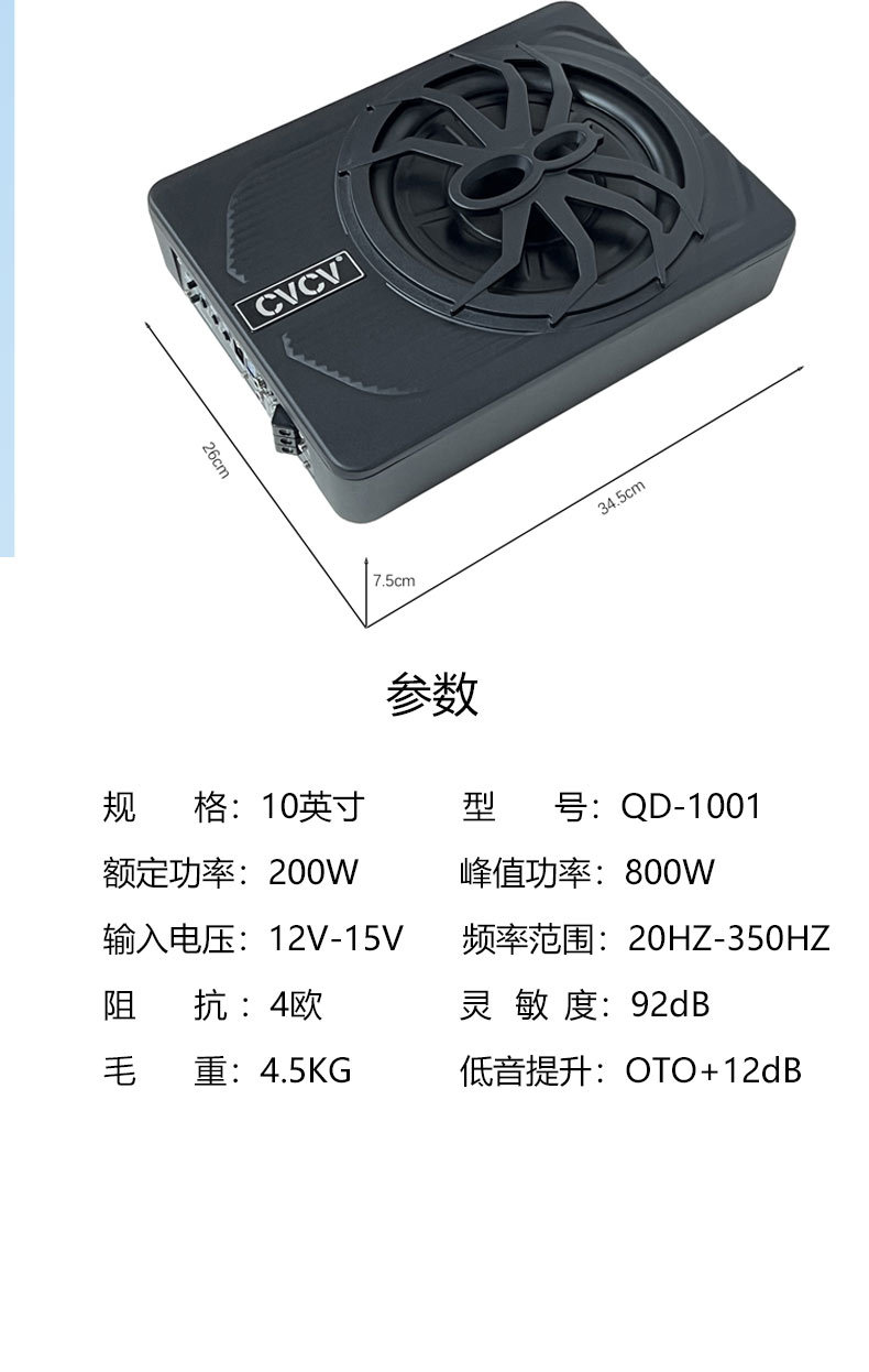 Кросс-граница высокомощный 10 дюймовый цветной светодиодный алюминиевый усилитель автомобильного аудио активный ультратонкий сабвуфер для сидений