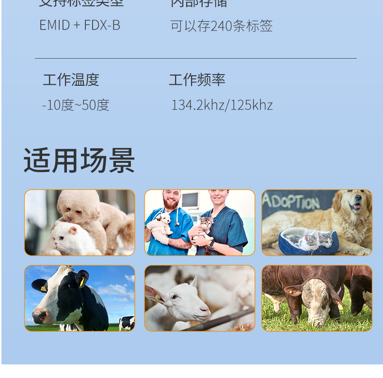 Сканер чипов для домашних животных Q40, портативный считыватель карт RFID для идентификации ушных меток животных
