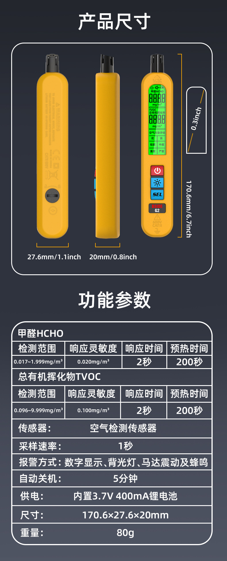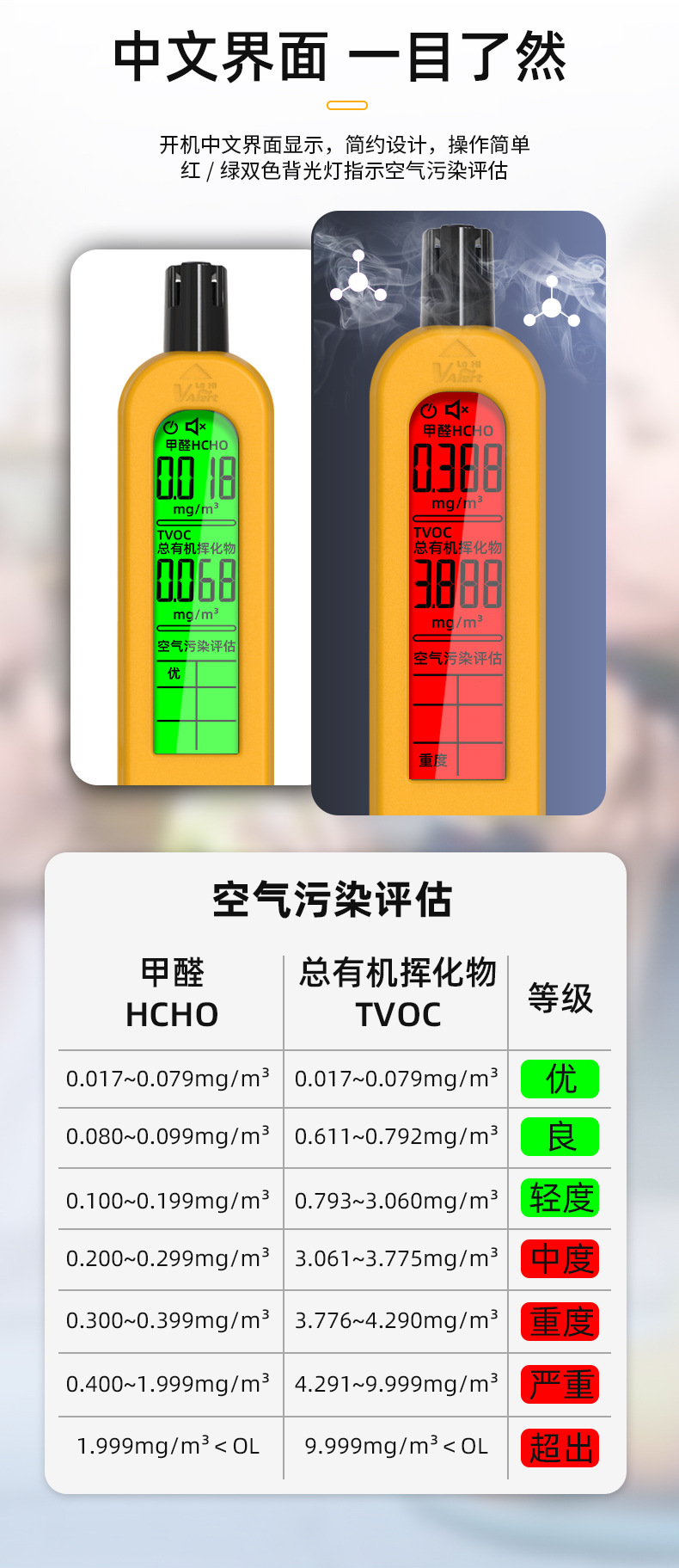 Диапазон измерений 0.017~1.999mg/m3