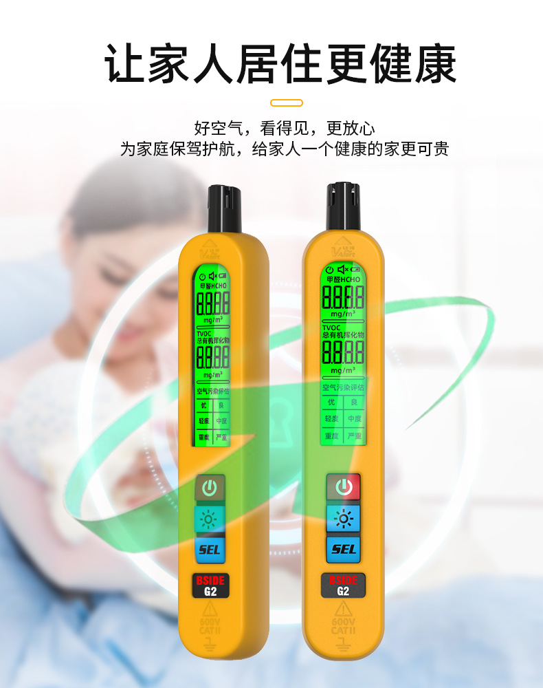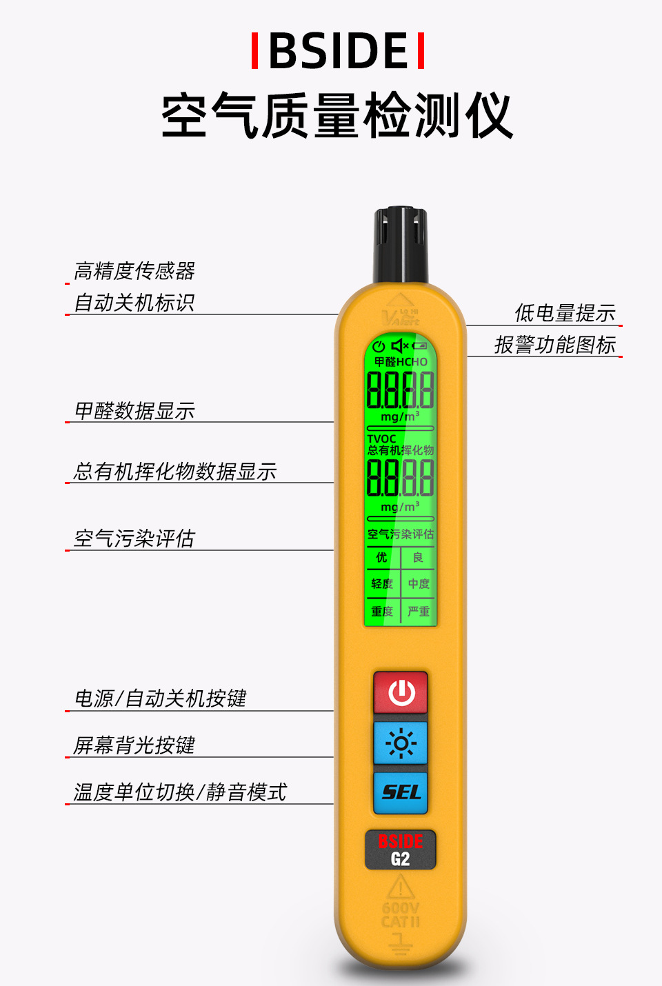 Портативный перезаряжаемый детектор формальдегида Bside Высокоточный детектор качества воздуха Оценка качества воздуха