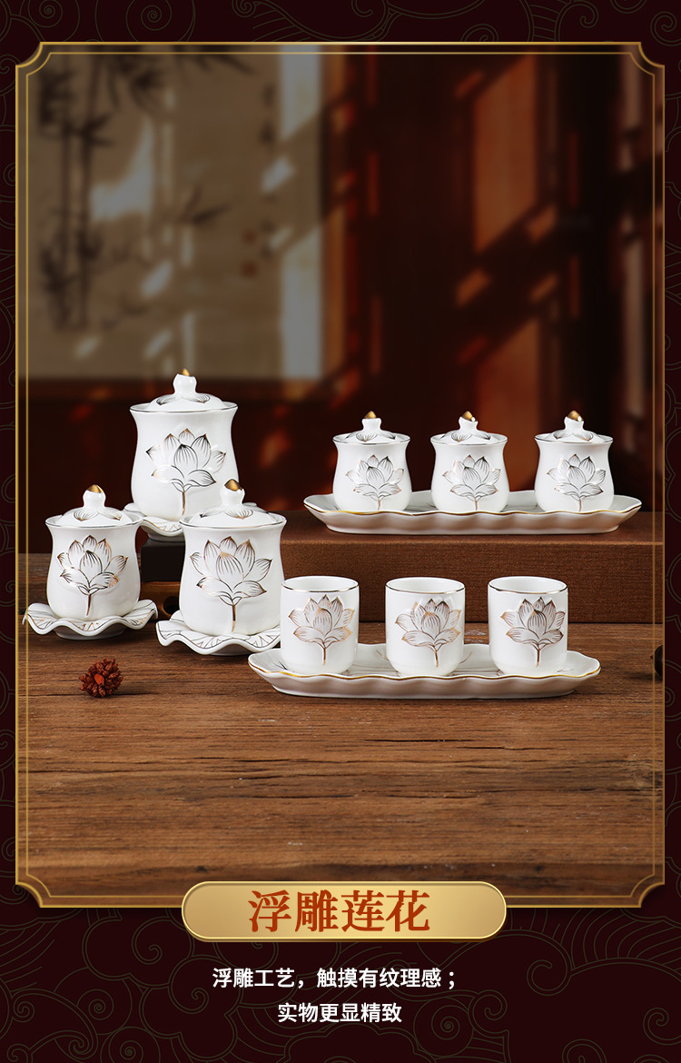 Украшения зала Будды золотая тисненая лотосовая священная чаша для воды чаша Гуаньинь керамические украшения принадлежности Будды