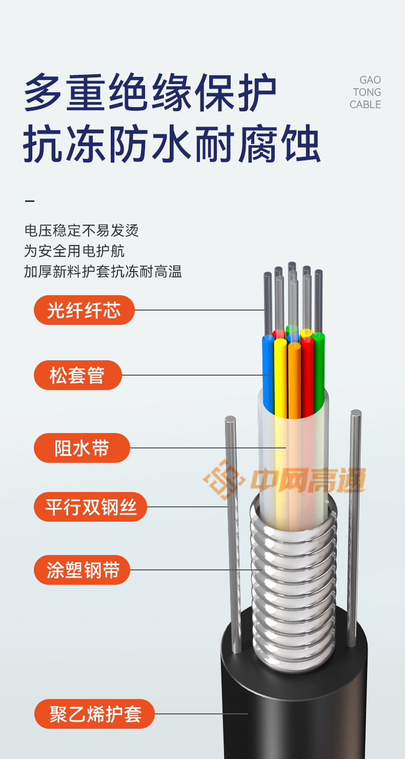 Область применения Pipeline non-directly buried non-self-supporting overhead outdoor communication optical cable
