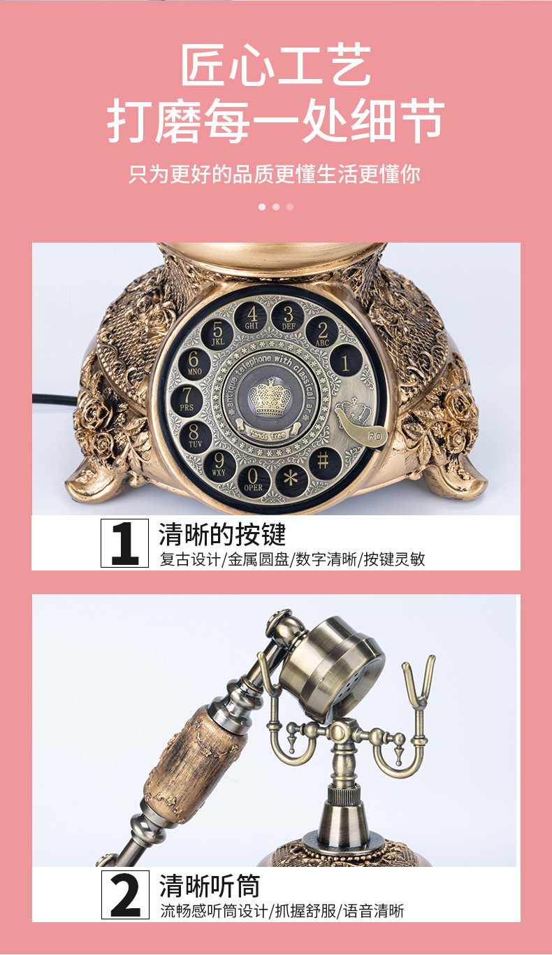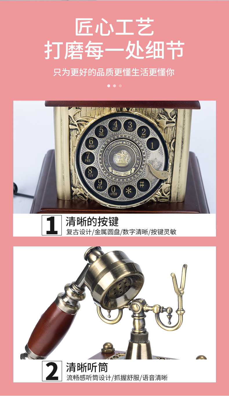 Кросс-бордный европейский стиль ретро телефон с механическим дисковым набором, телефон из розового дерева для домашнего использования, ностальгический