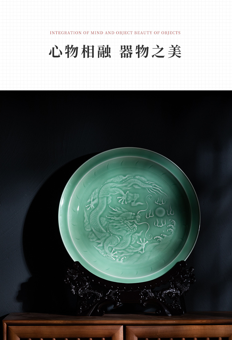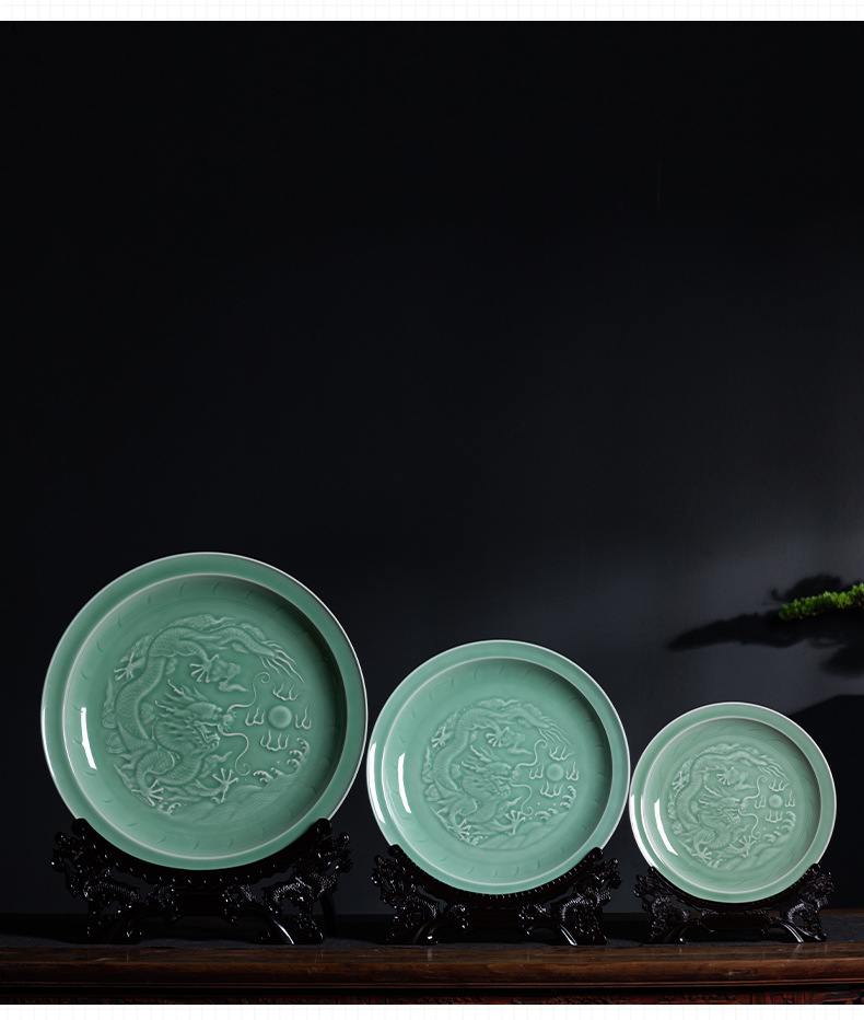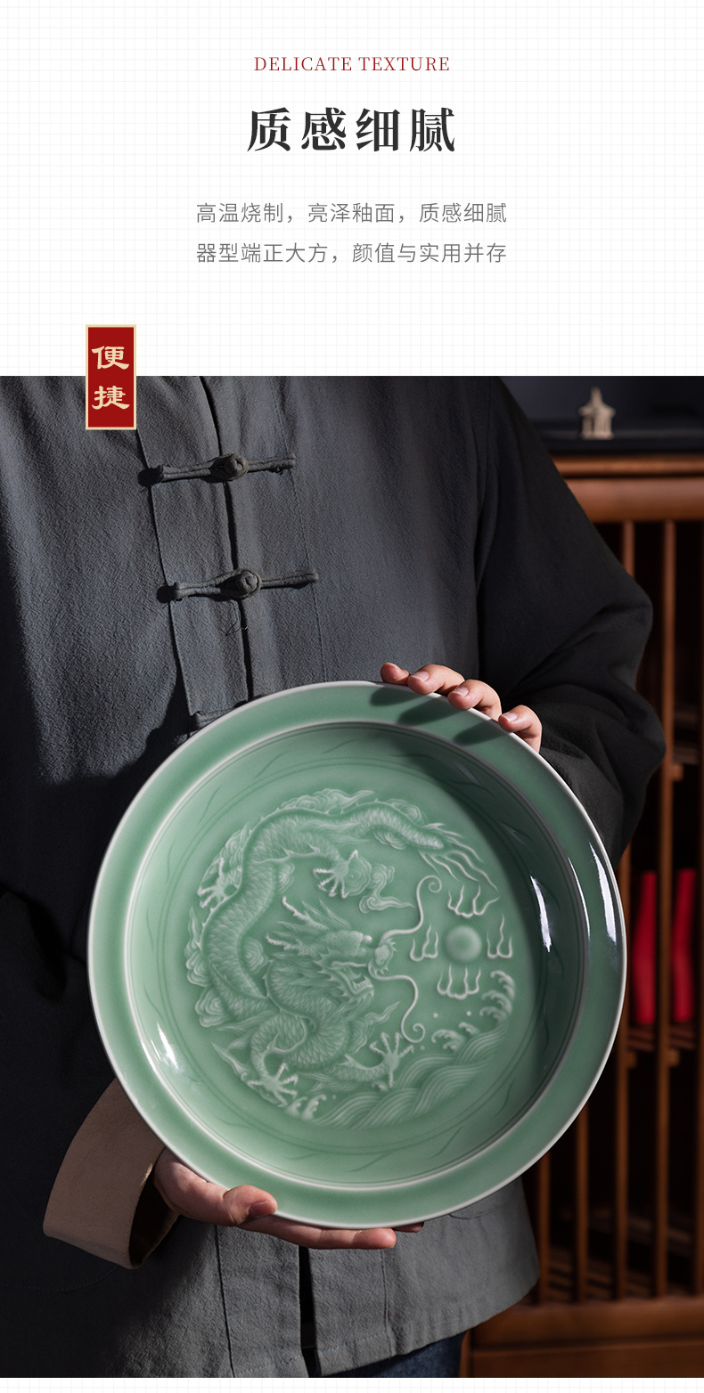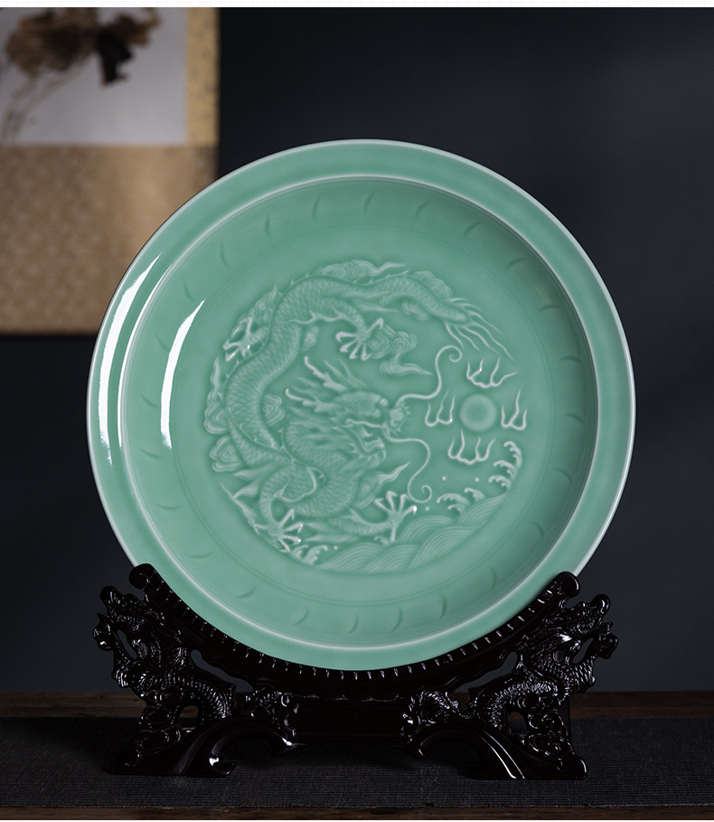 Пустая тарелка с драконьим узором из небесно-зеленой керамики, декор для дома, креативный стиль для дома и офиса, китайский стиль