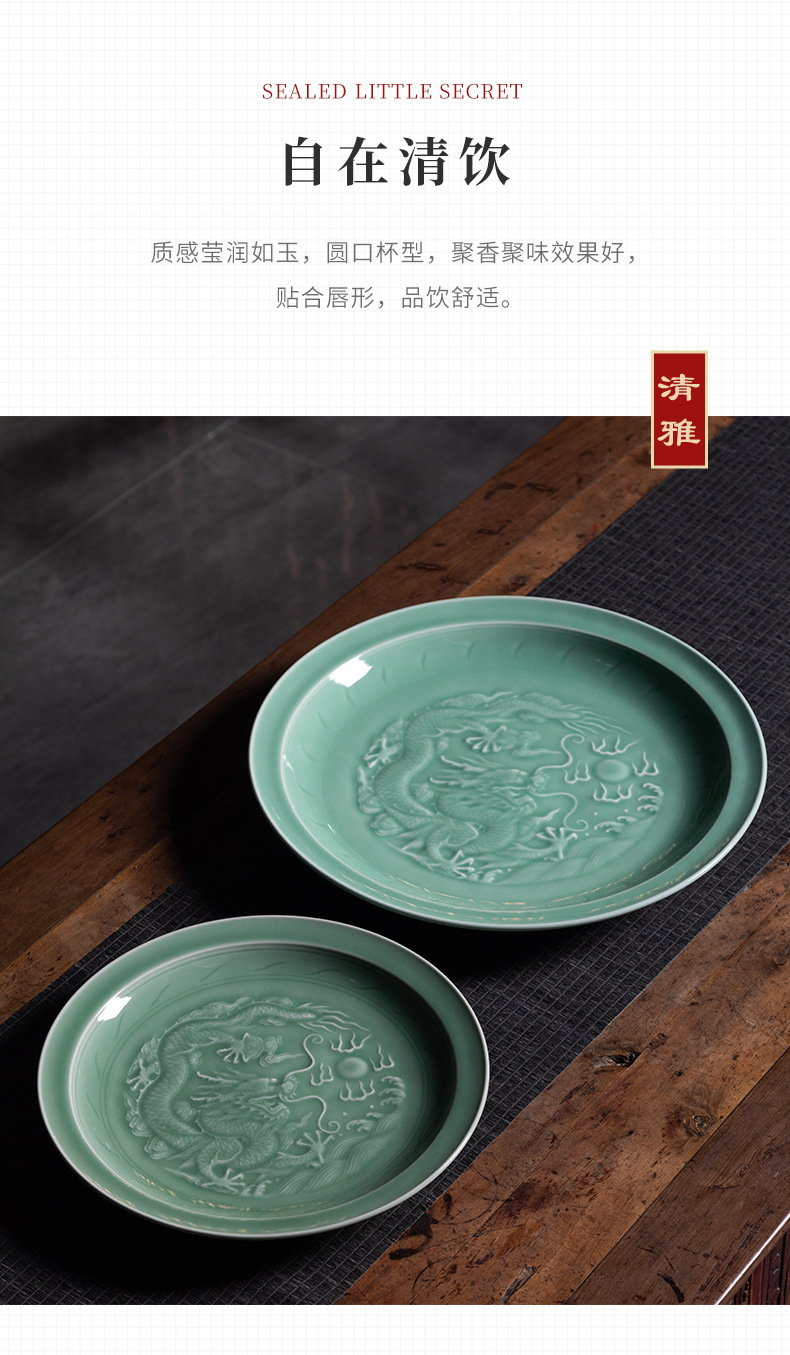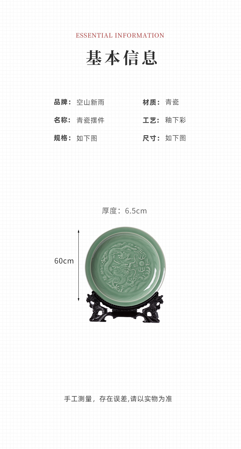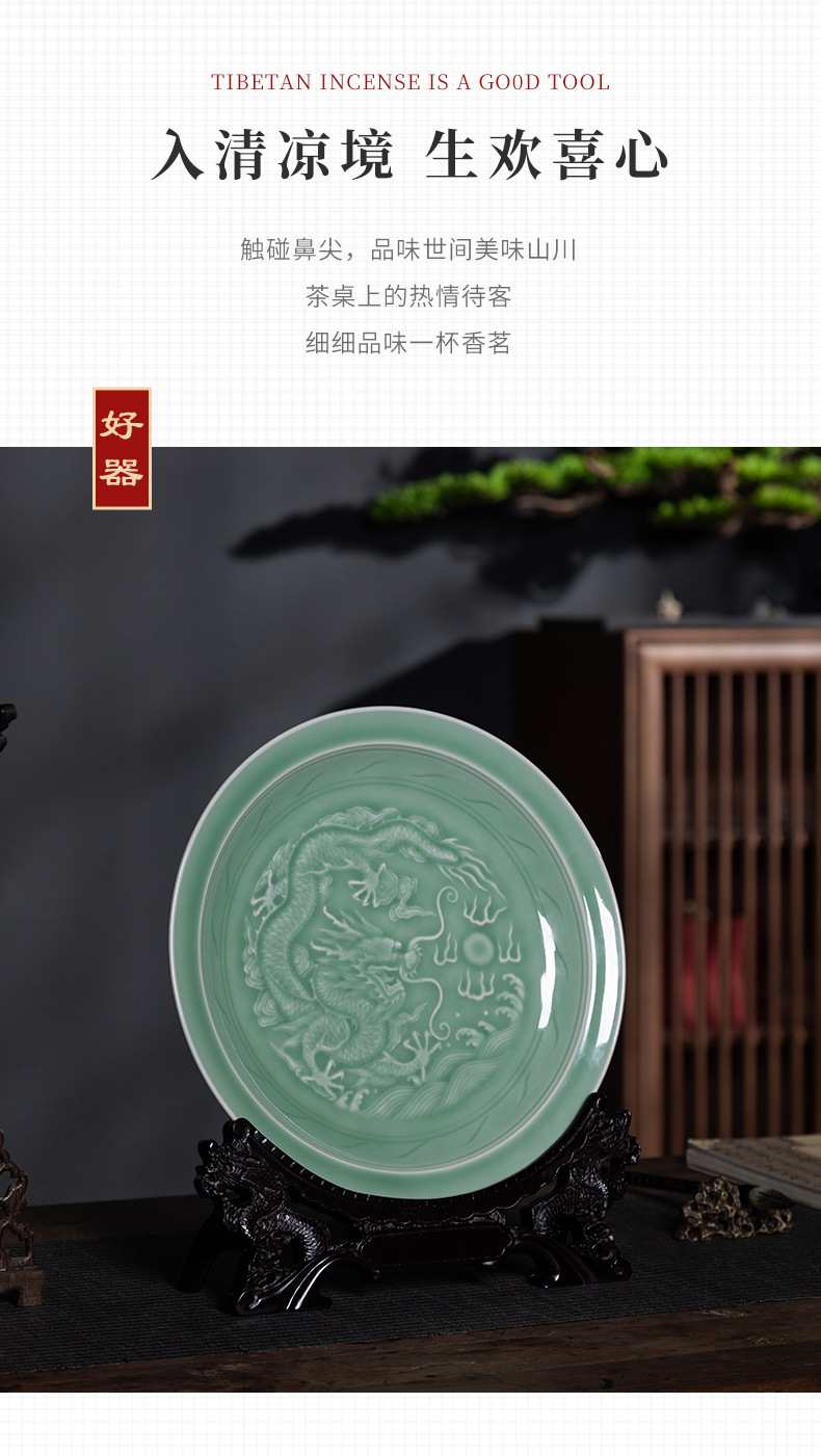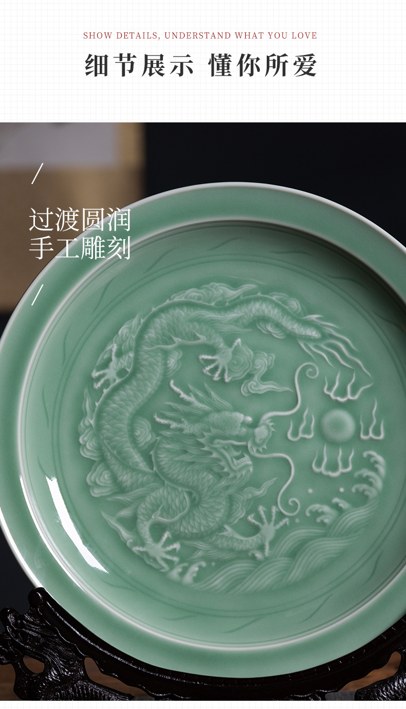 Пустая тарелка с драконьим узором из небесно-зеленой керамики, декор для дома, креативный стиль для дома и офиса, китайский стиль