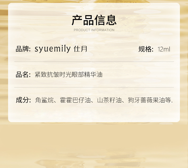 Полное название продукта Syuemily firming anti-wrinkle time eye essence oil 12ml